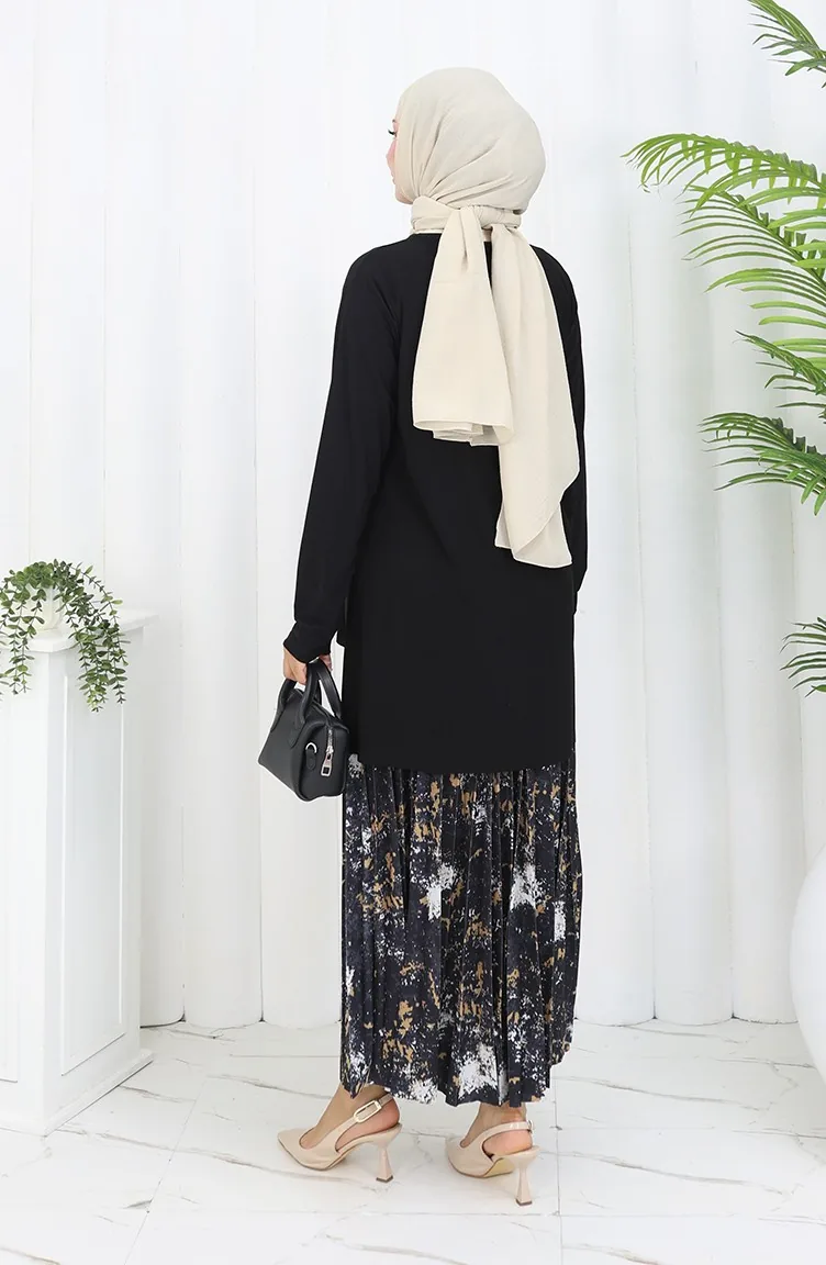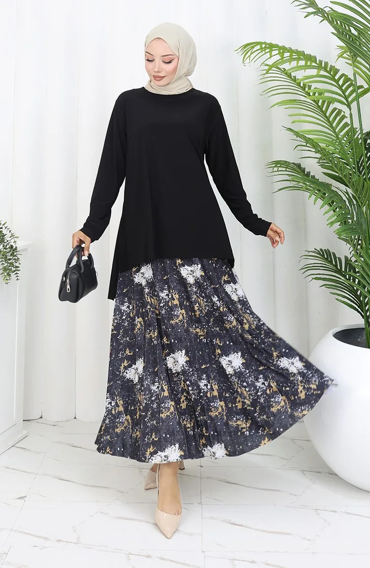 Sandy Kumaş Tunik Etek İkili Takım 2073-02 Siyah