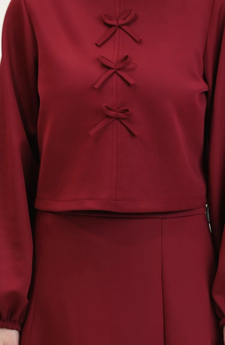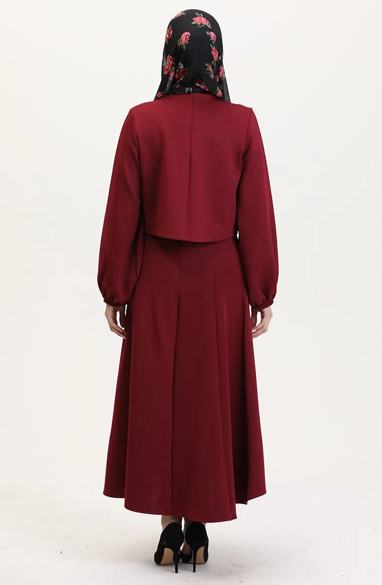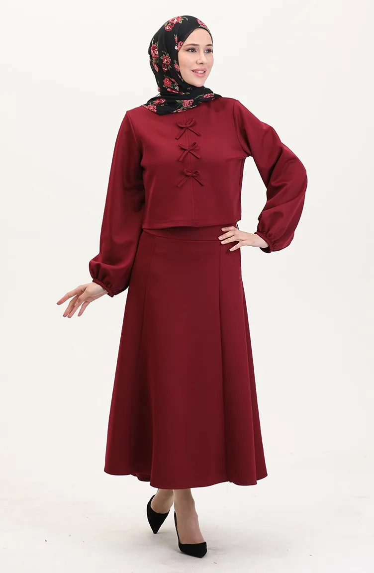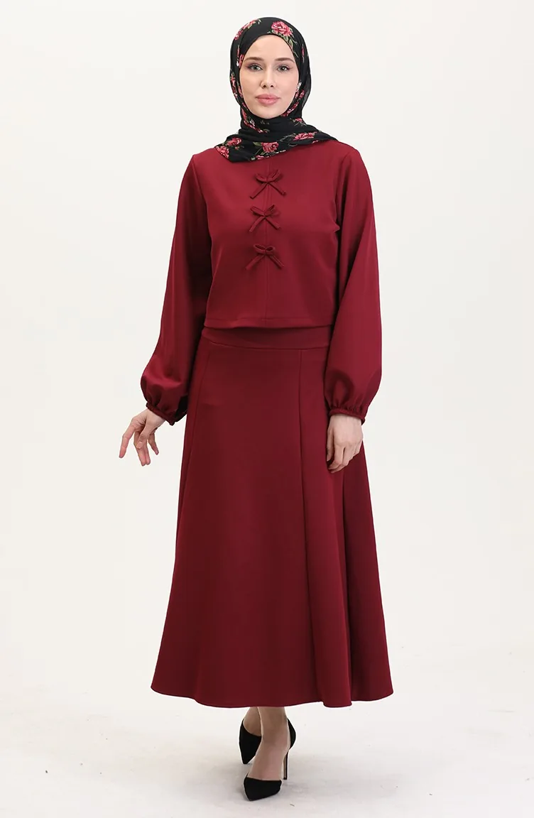 Scuba Kumaş Bluz Etek İkili Takım 0021-02 Bordo