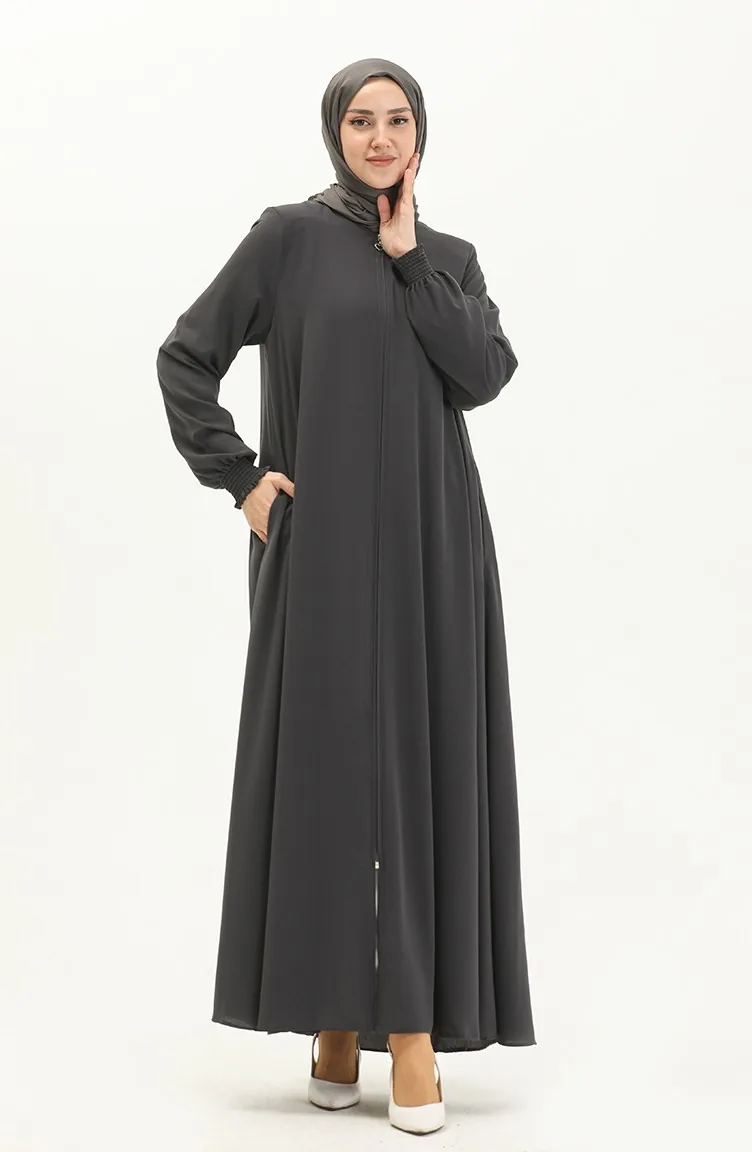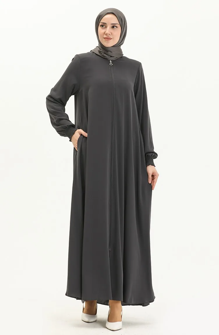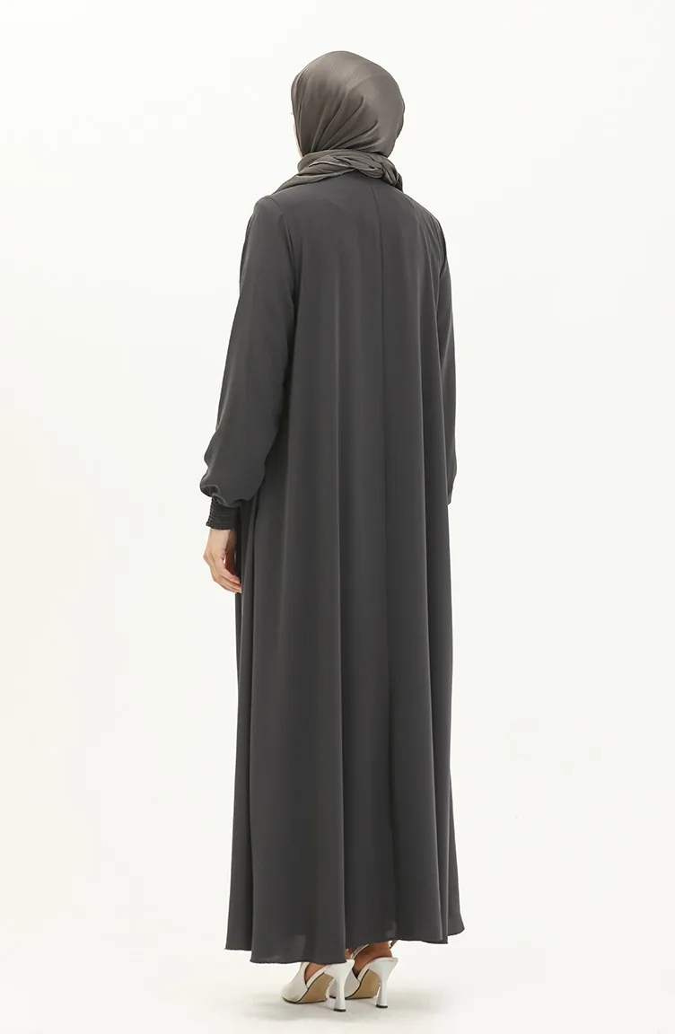 Abaya à Manches élastique 5049-05 Gris 5049-05