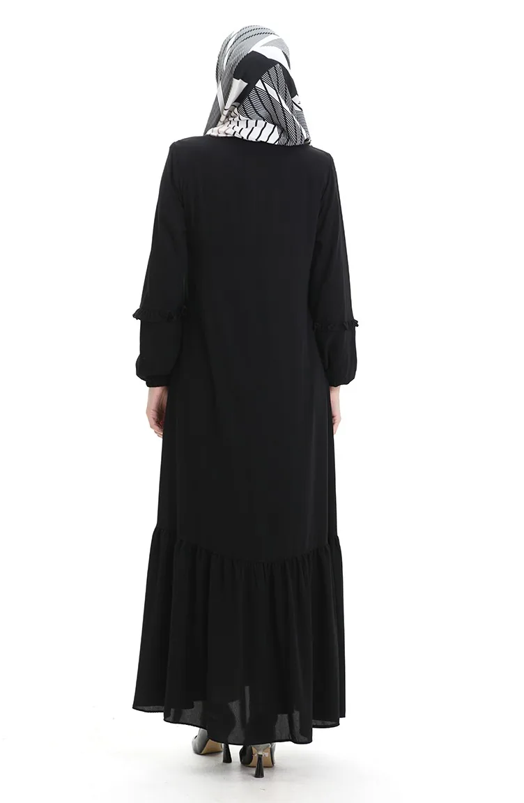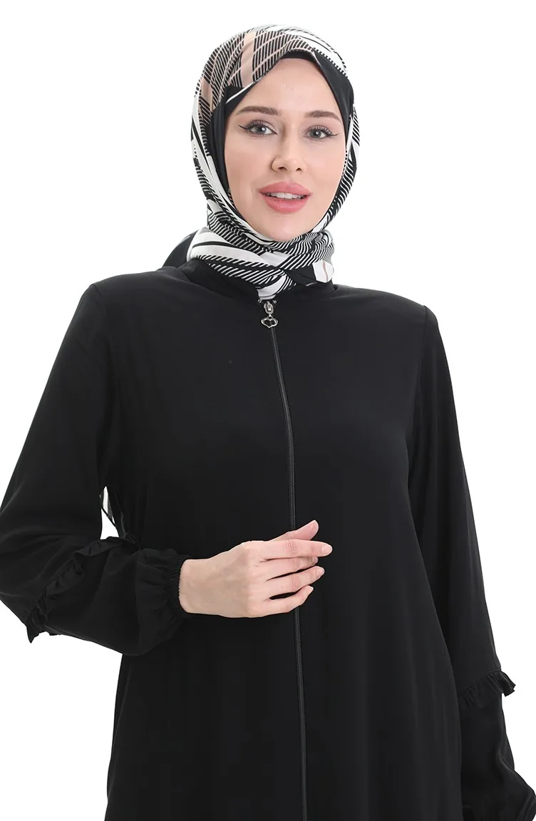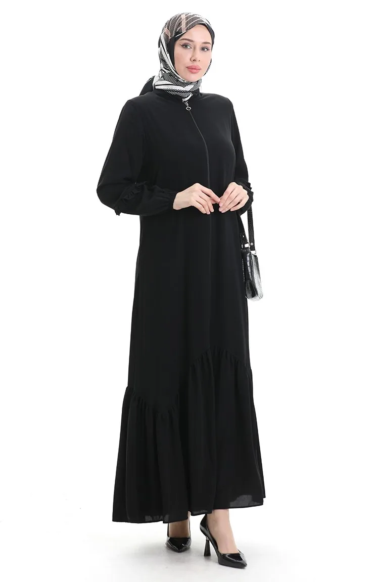 Abaya Froncée Zippée 5078-01 Noir 5078-01