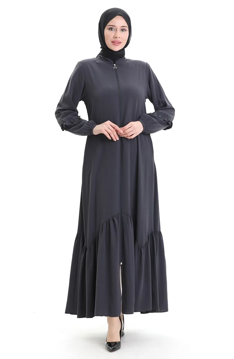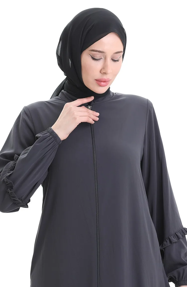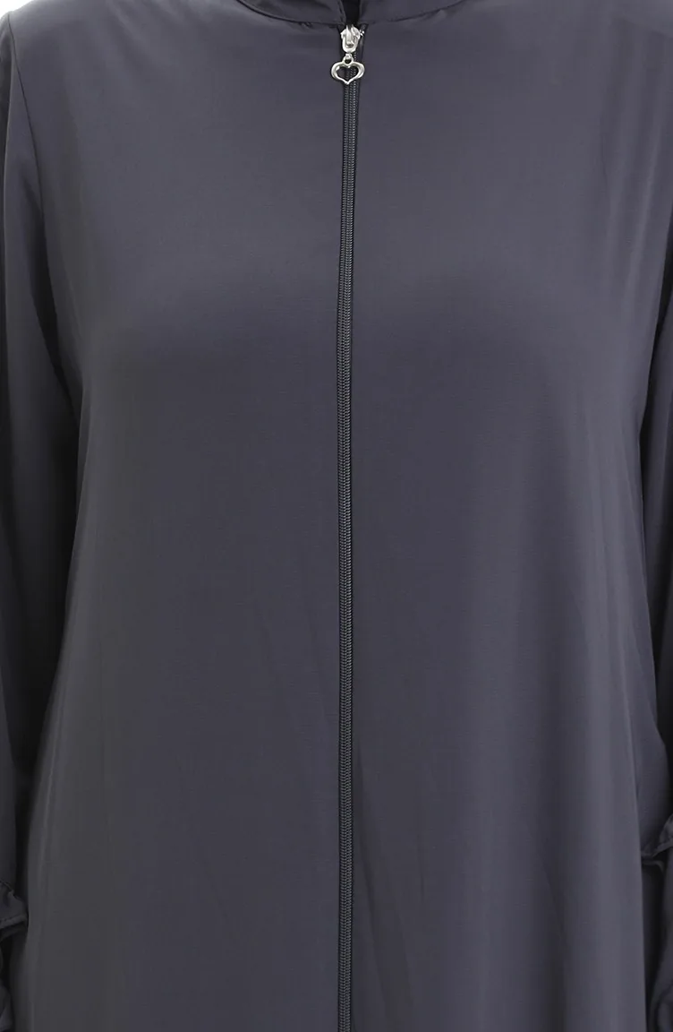 Abaya Froncée Zippée 5078-05 Fumée 5078-05