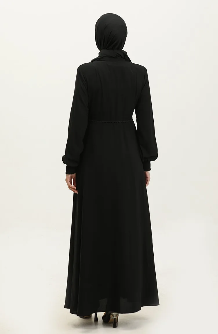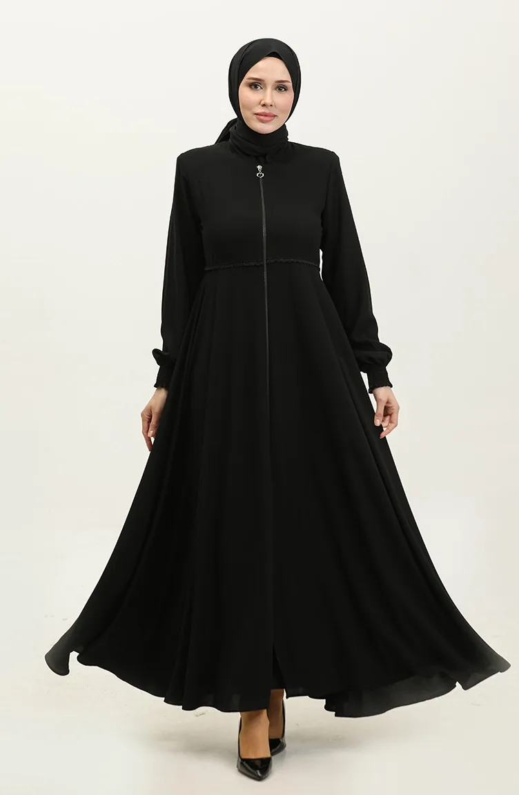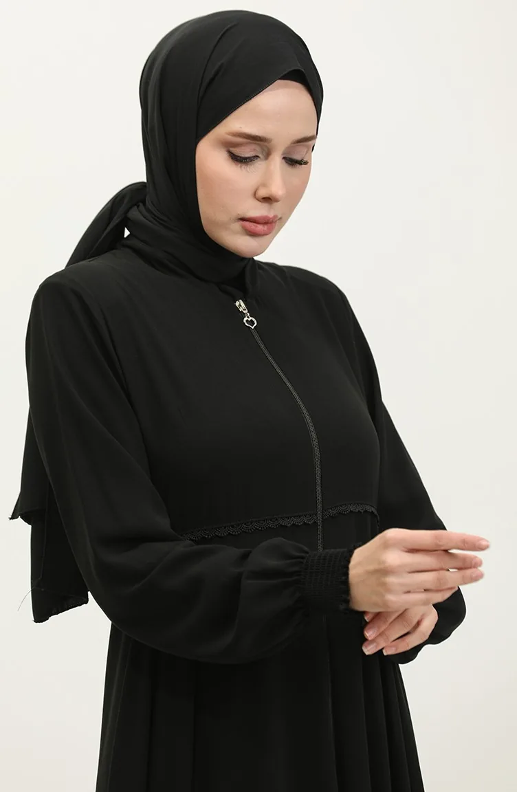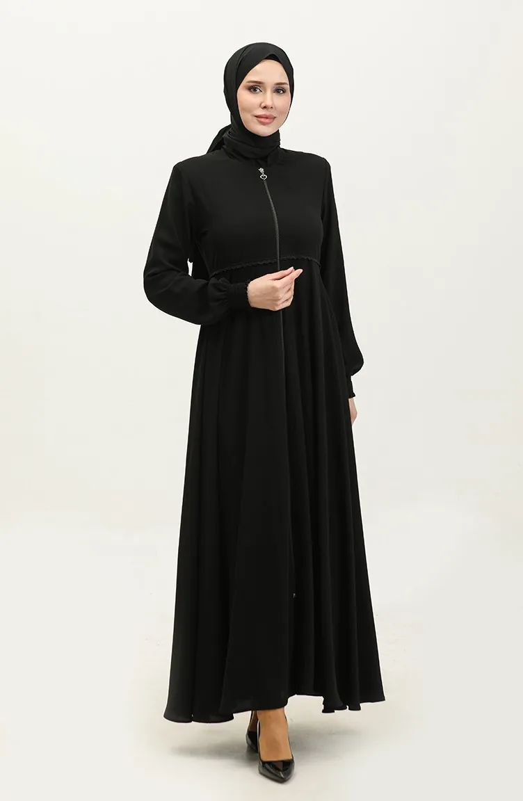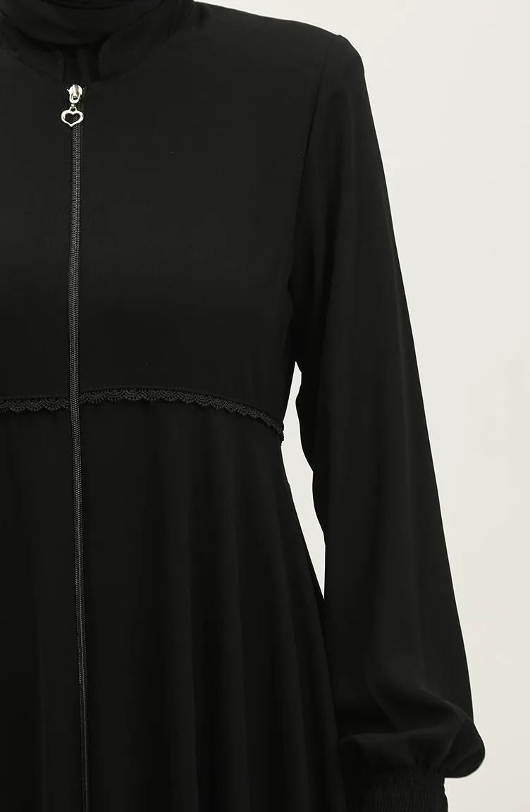 Abaya Mevlana Détail Dentelle 5069-01 Noir 5069-01