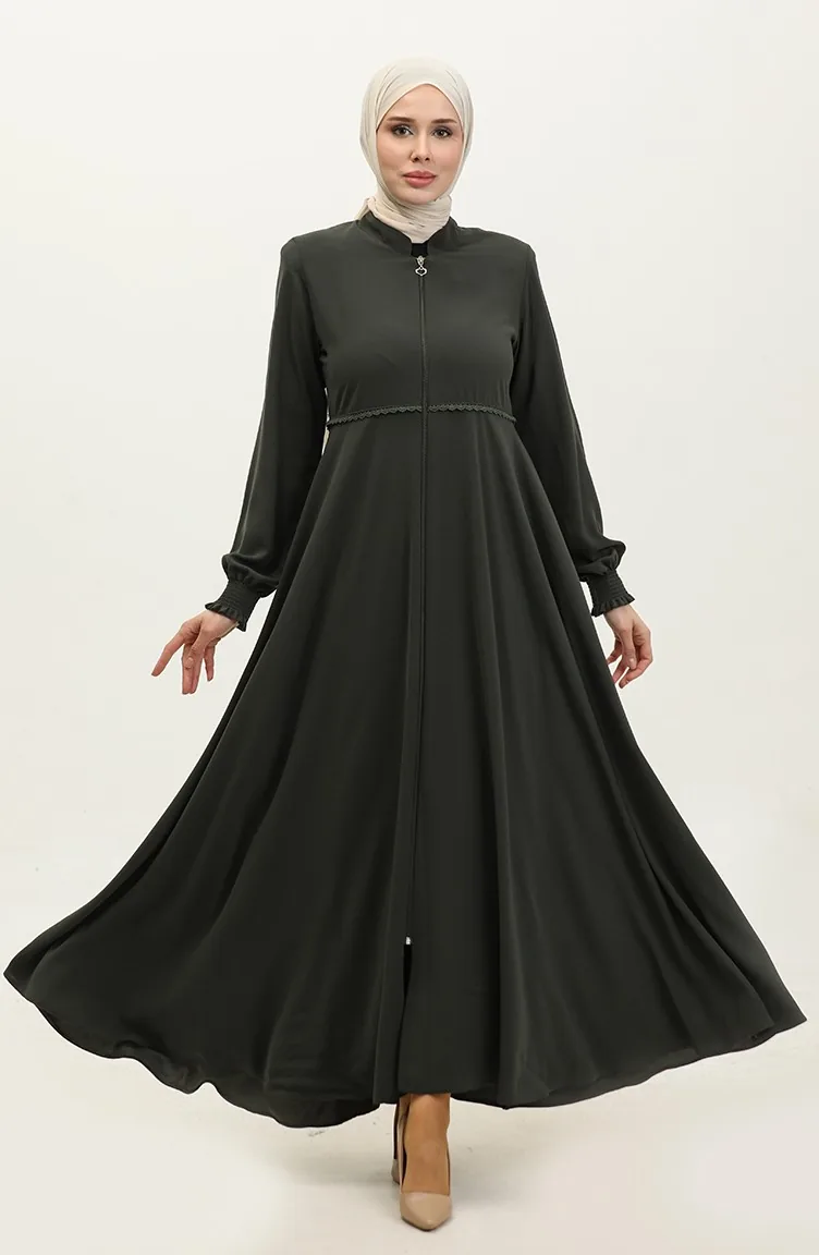 Abaya Mevlana Détail Dentelle 5069-03 Khaki 5069-03