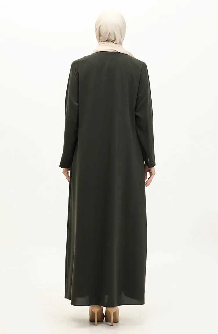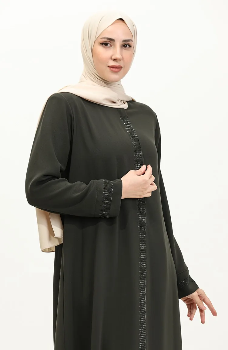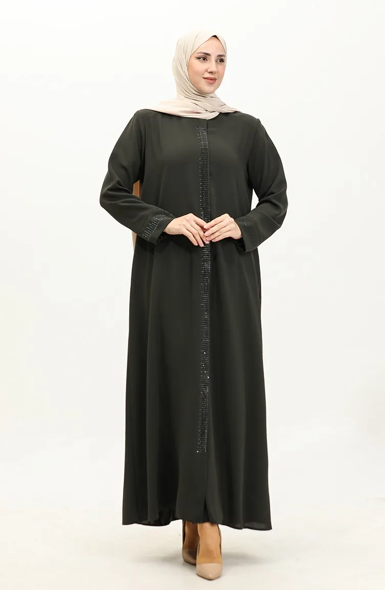 Abaya Pierre Imprimée Grande Taille 5067-03 Khaki 5067-03