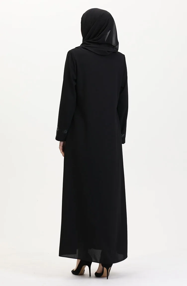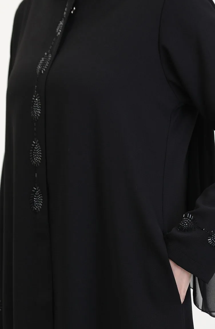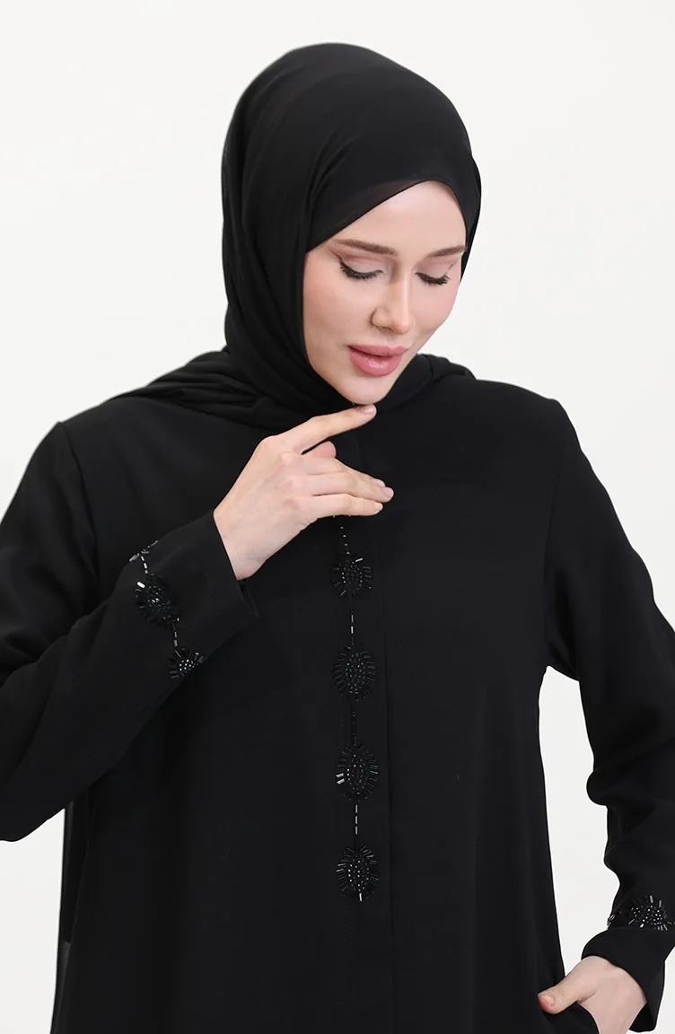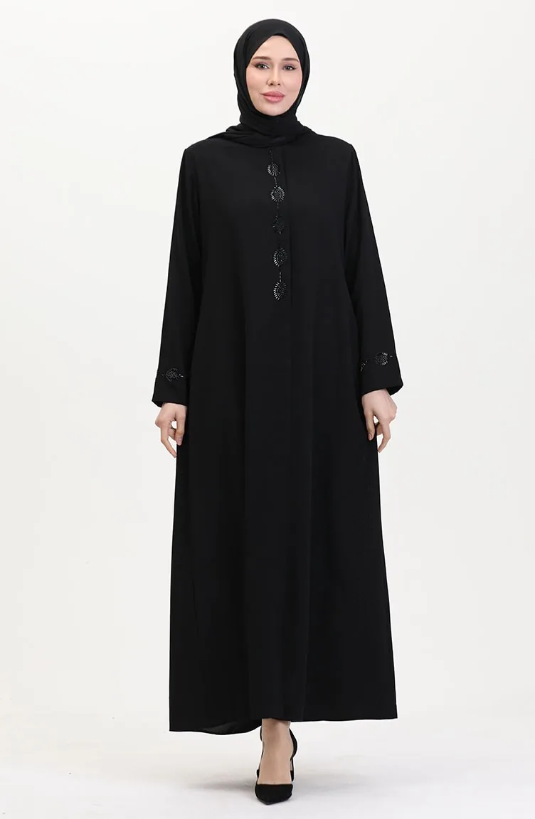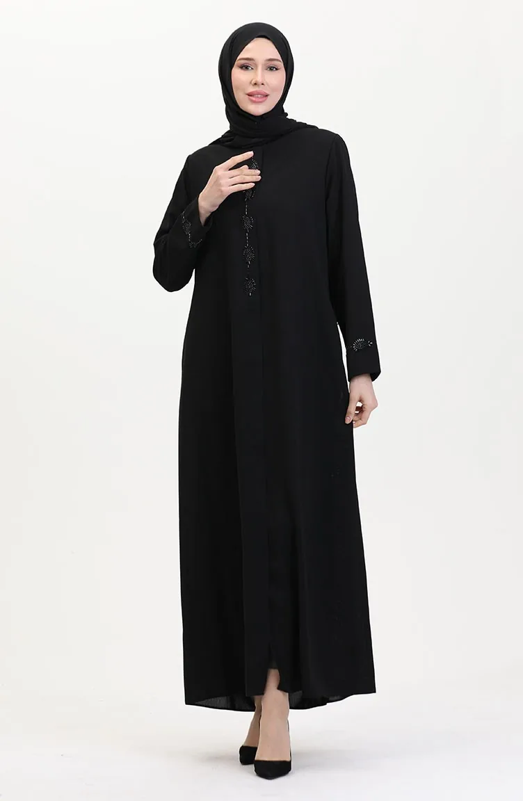 Abaya Brodée De Pierres Grande Taille 5077-01 Noir 5077-01