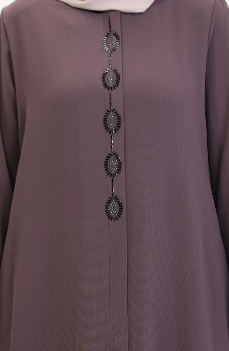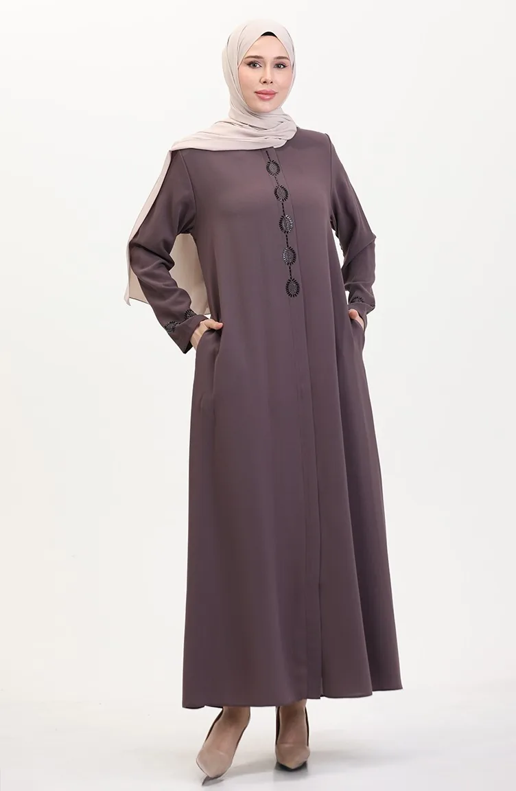Abaya Brodée De Pierres Grande Taille 5077-06 Café Au Lait 5077-06