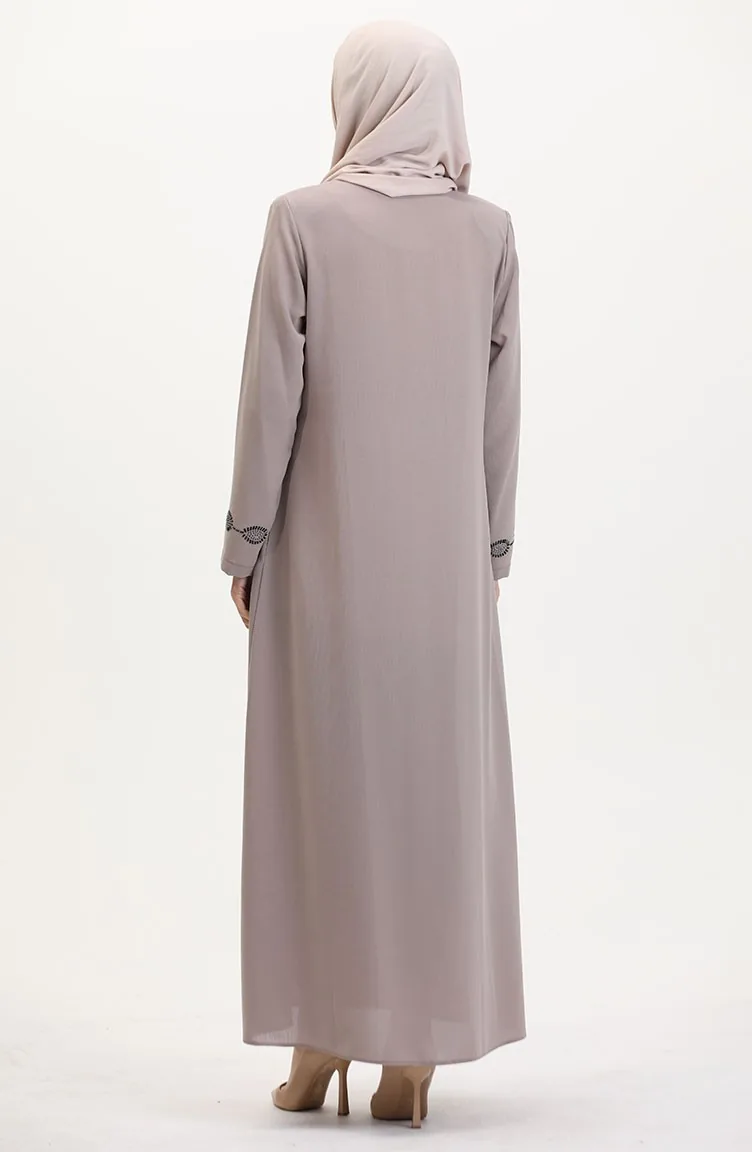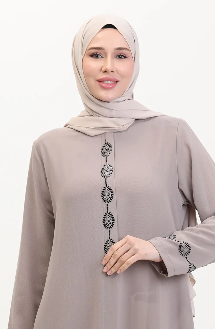 Abaya Brodée De Pierres Grande Taille 5077-07 Vison 5077-07