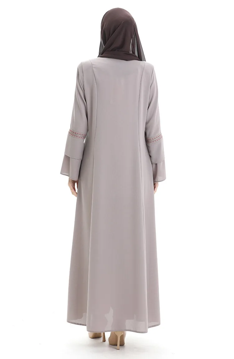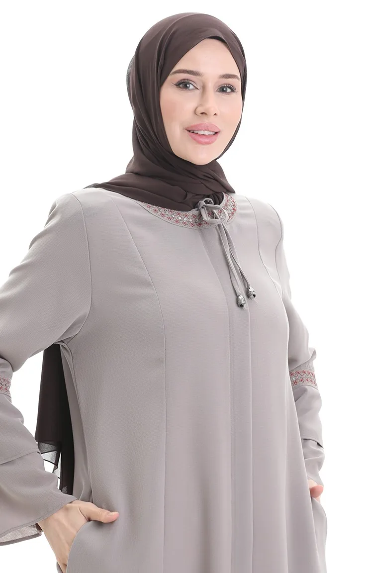 Abaya Brodée Grande Taille Avec Fermeture éclair Dissimulée 6193-06 Vison 6193-06