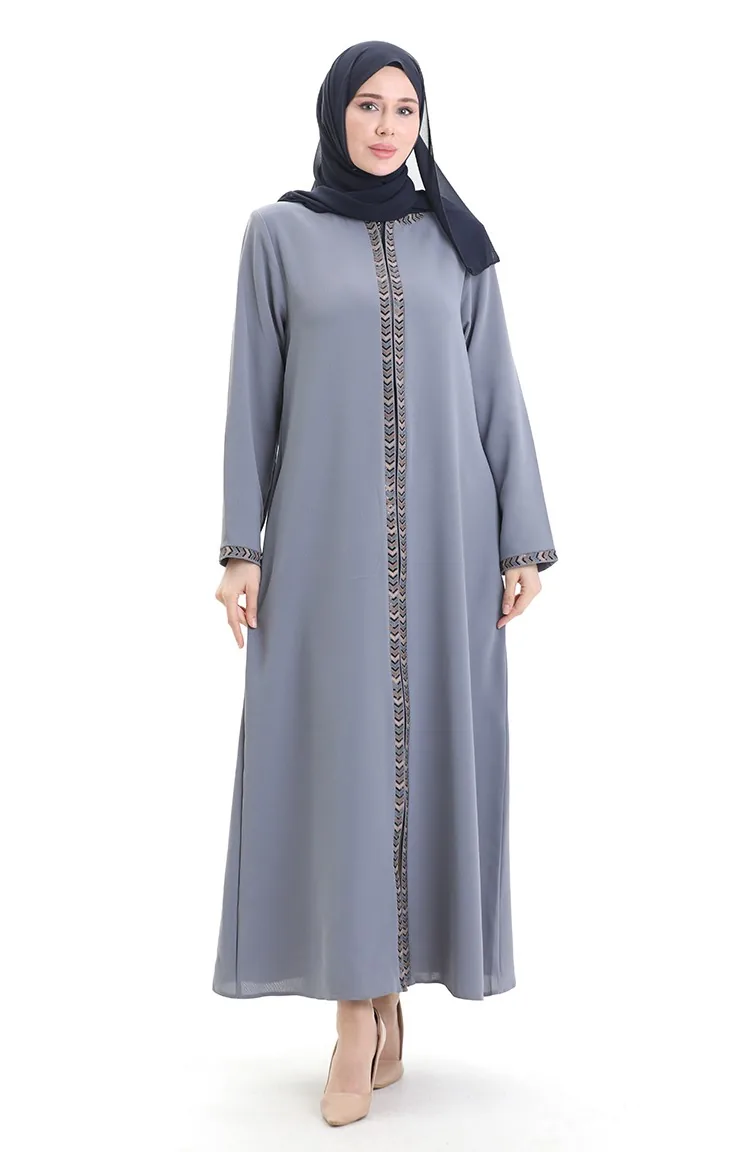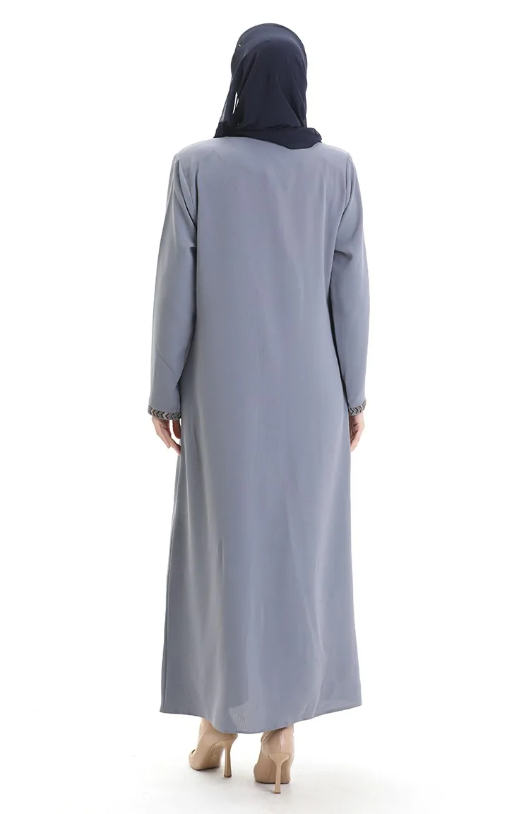 Abaya Zippée En Tissu Nid D`abeille Grande Taille 6183-03 Gris 6183-03