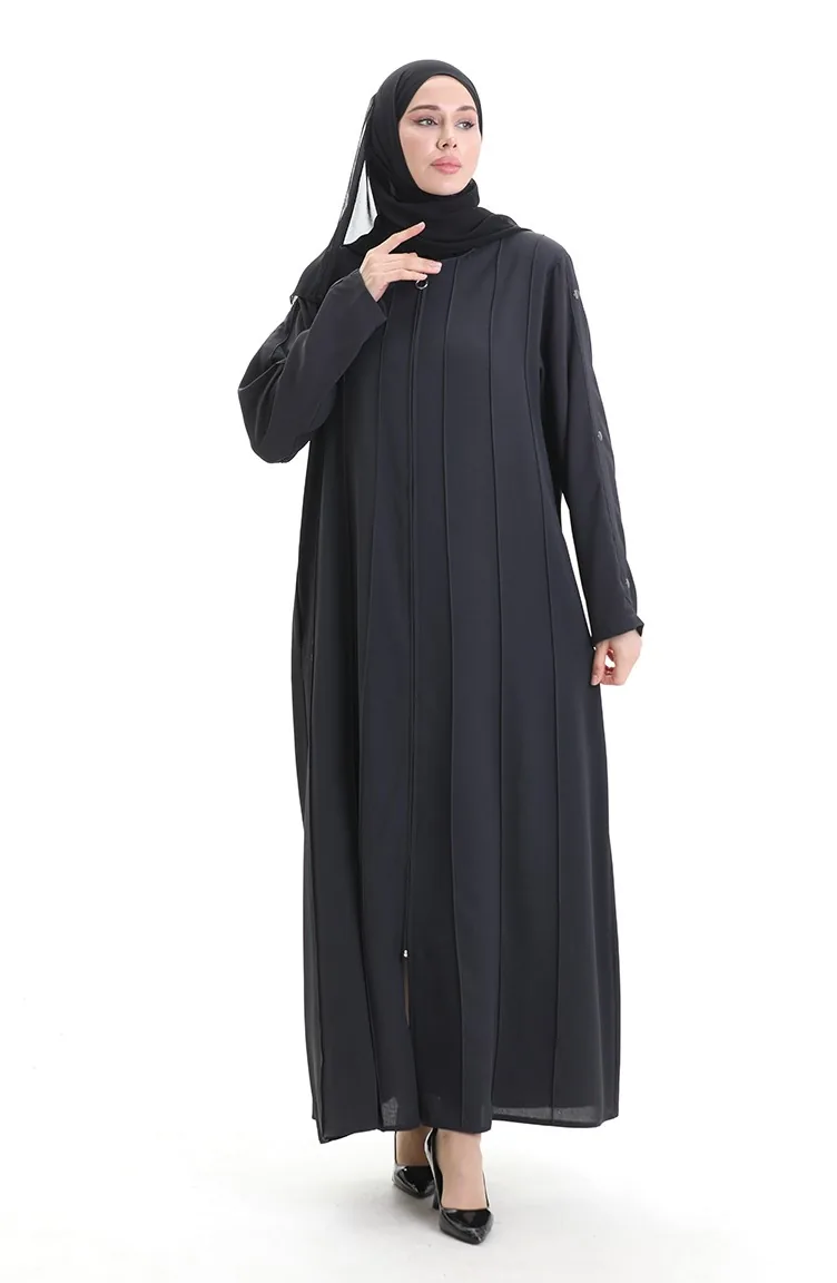 Abaya Zippée Grande Taille Avec Coutures Apparentes 6177-06 Gris 6177-06