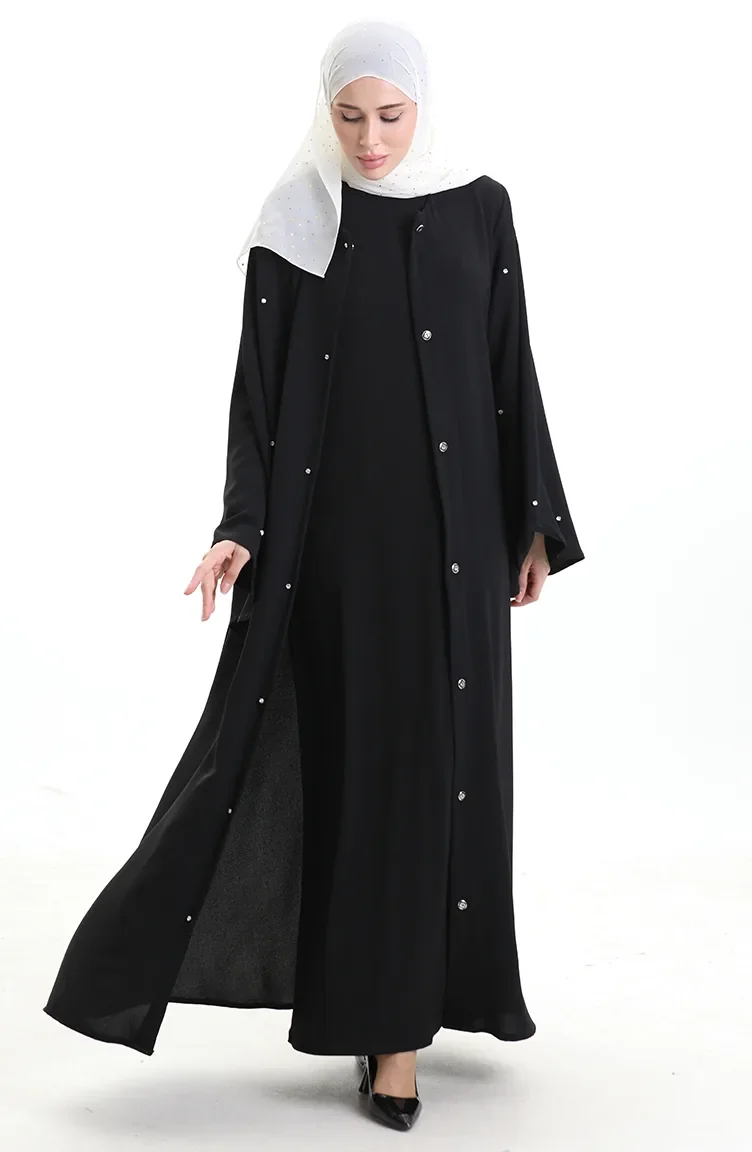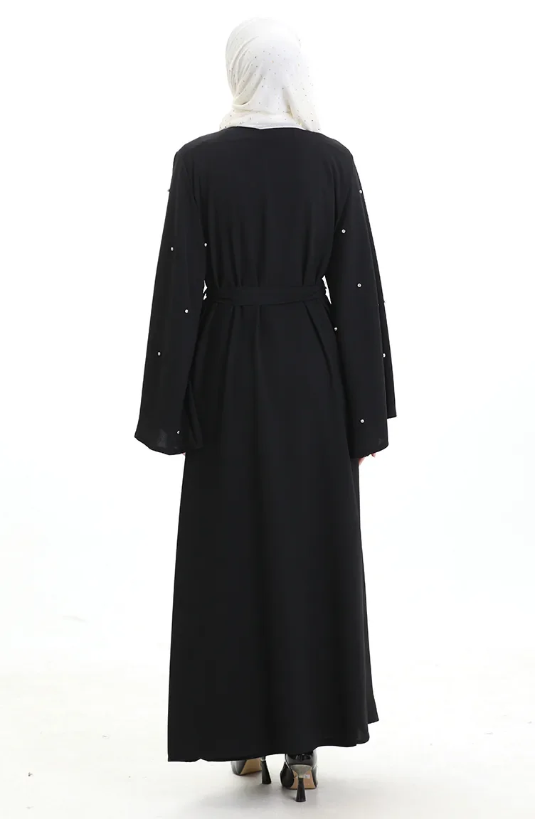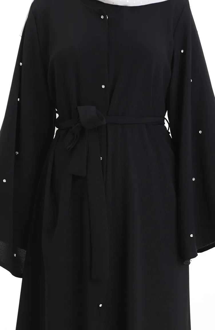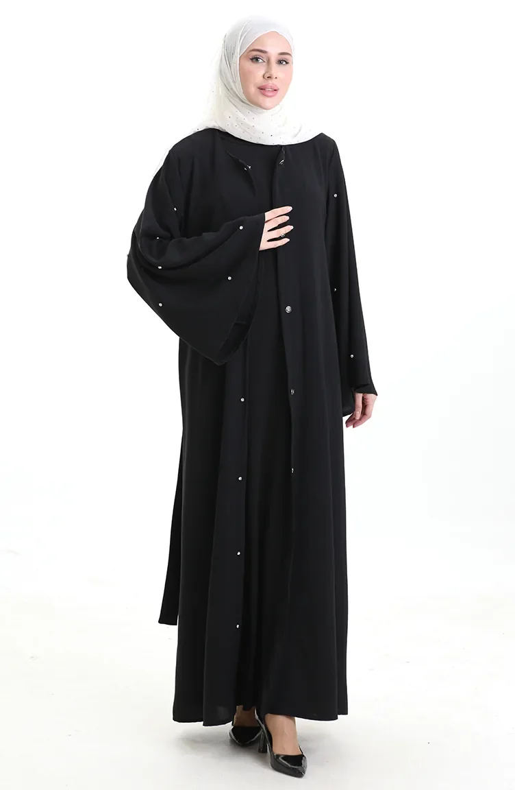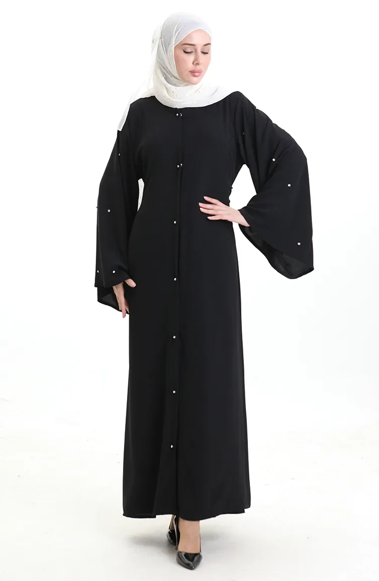 Abaya Laquée à Manches Volantées Grande Taille 0168-01 Noir 0168-01