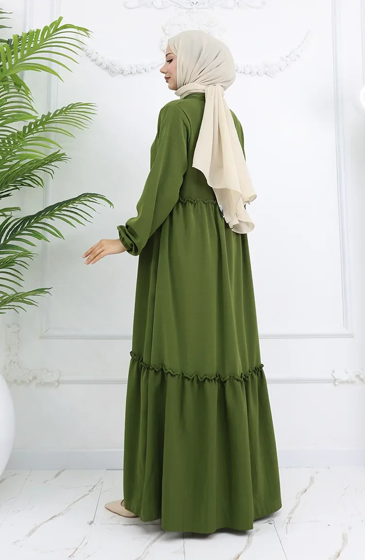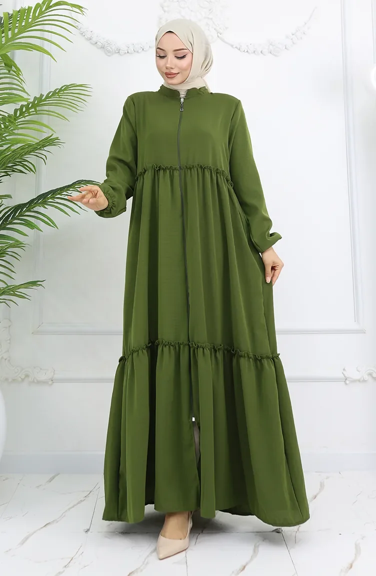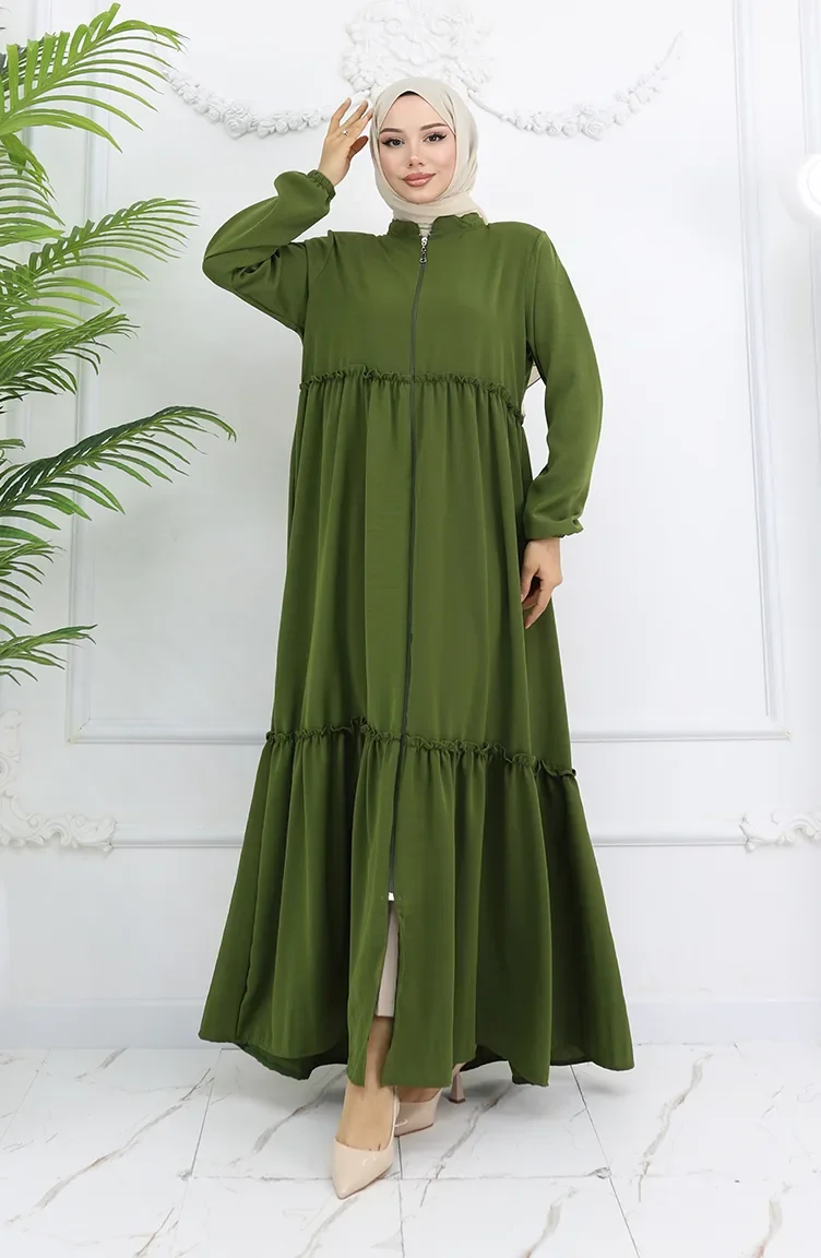 Abaya à Volants Et Fermeture éclair Intégrale 0024-02 Kaki 0024-02