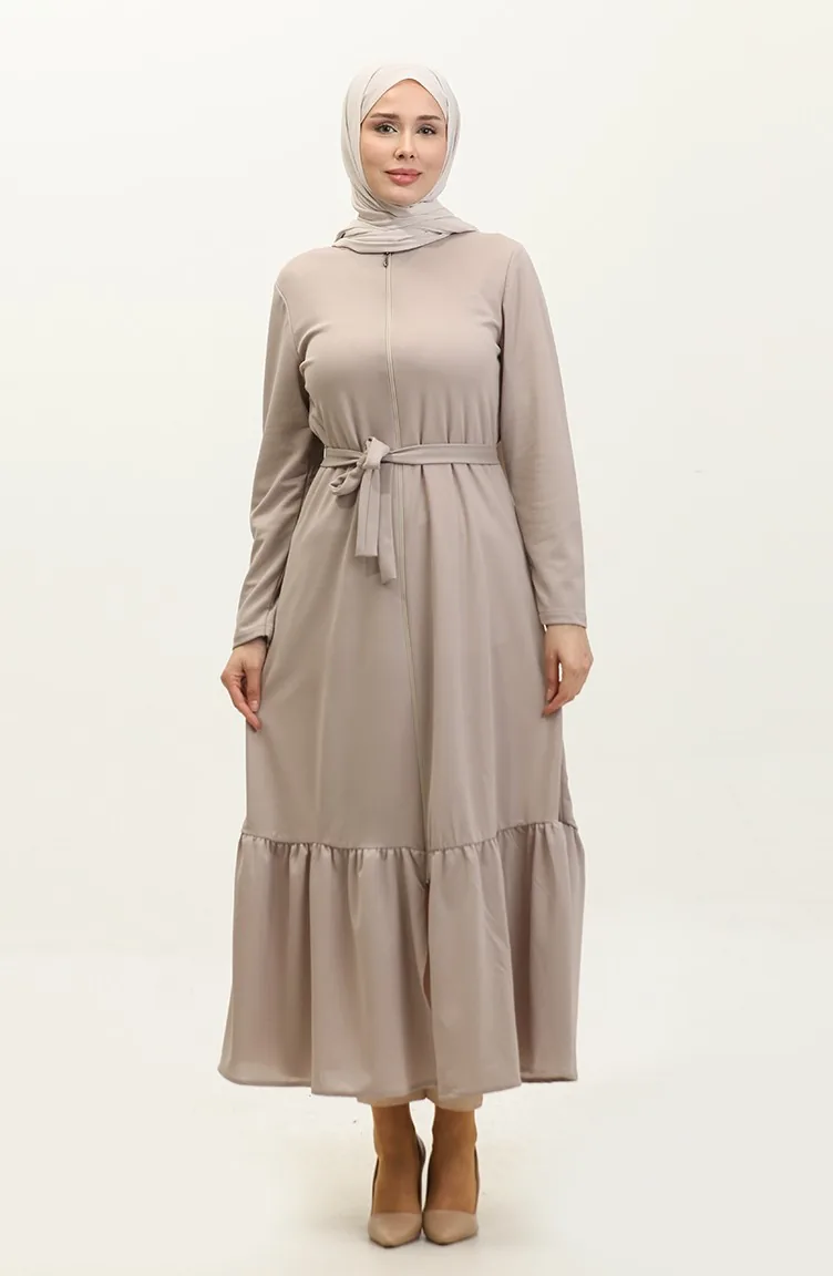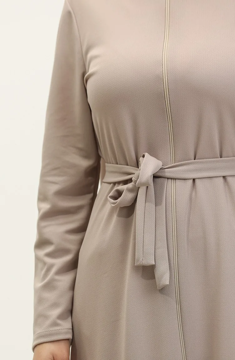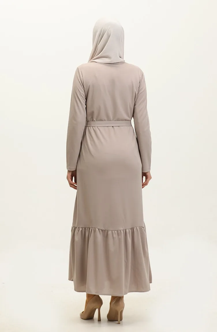 Abaya Avec Ceinture Et Ourlet Fronce 0703-07 Vison 0703-07