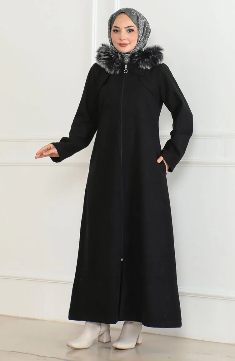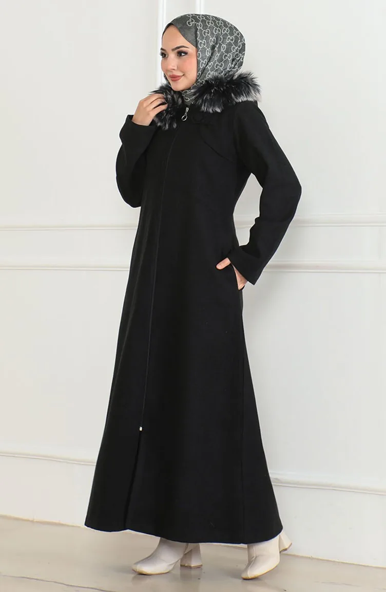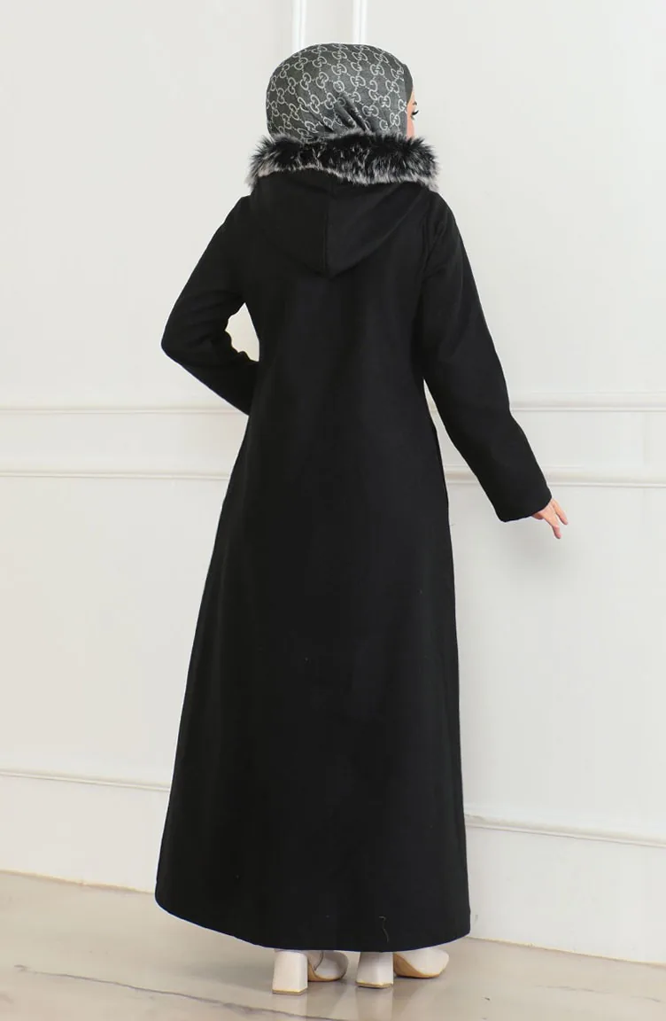 Manteau En Fourrure à Capuche 2058-01 Noir 2058-01