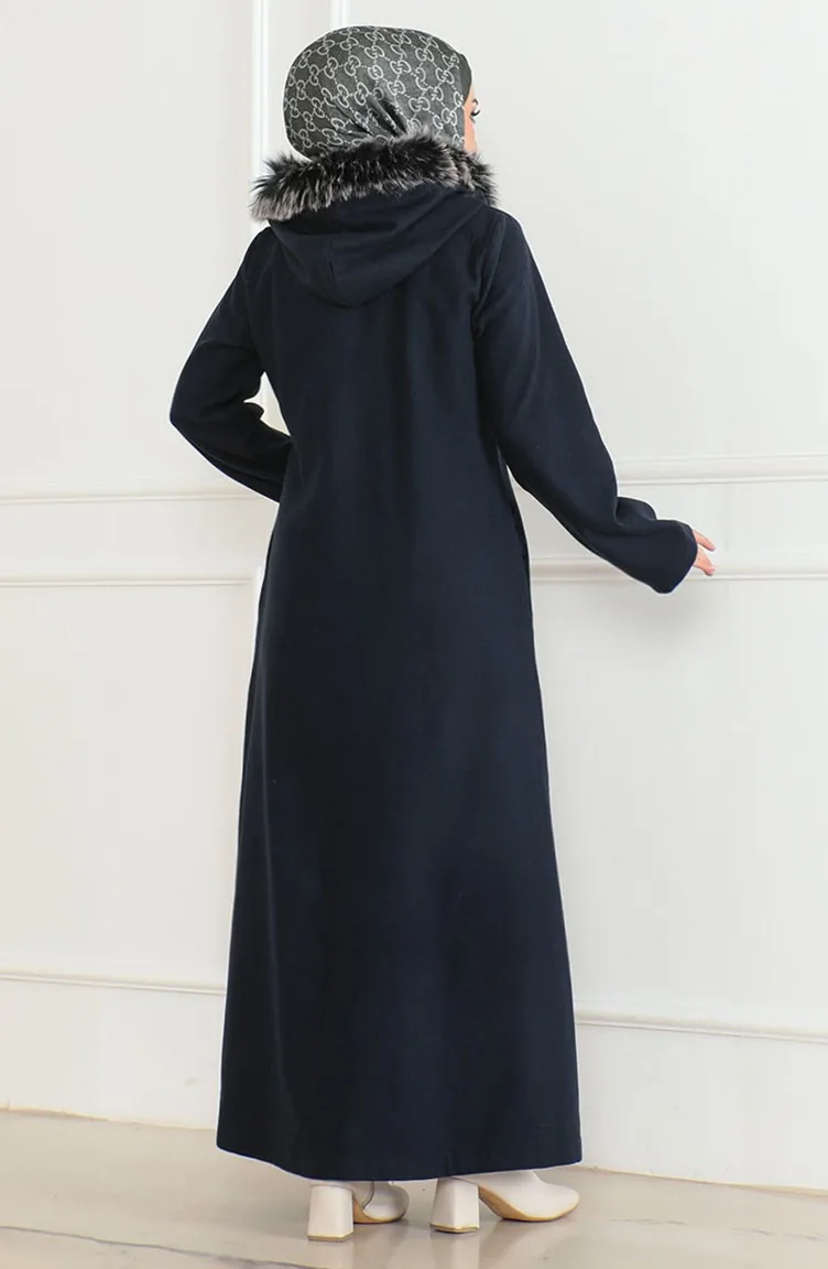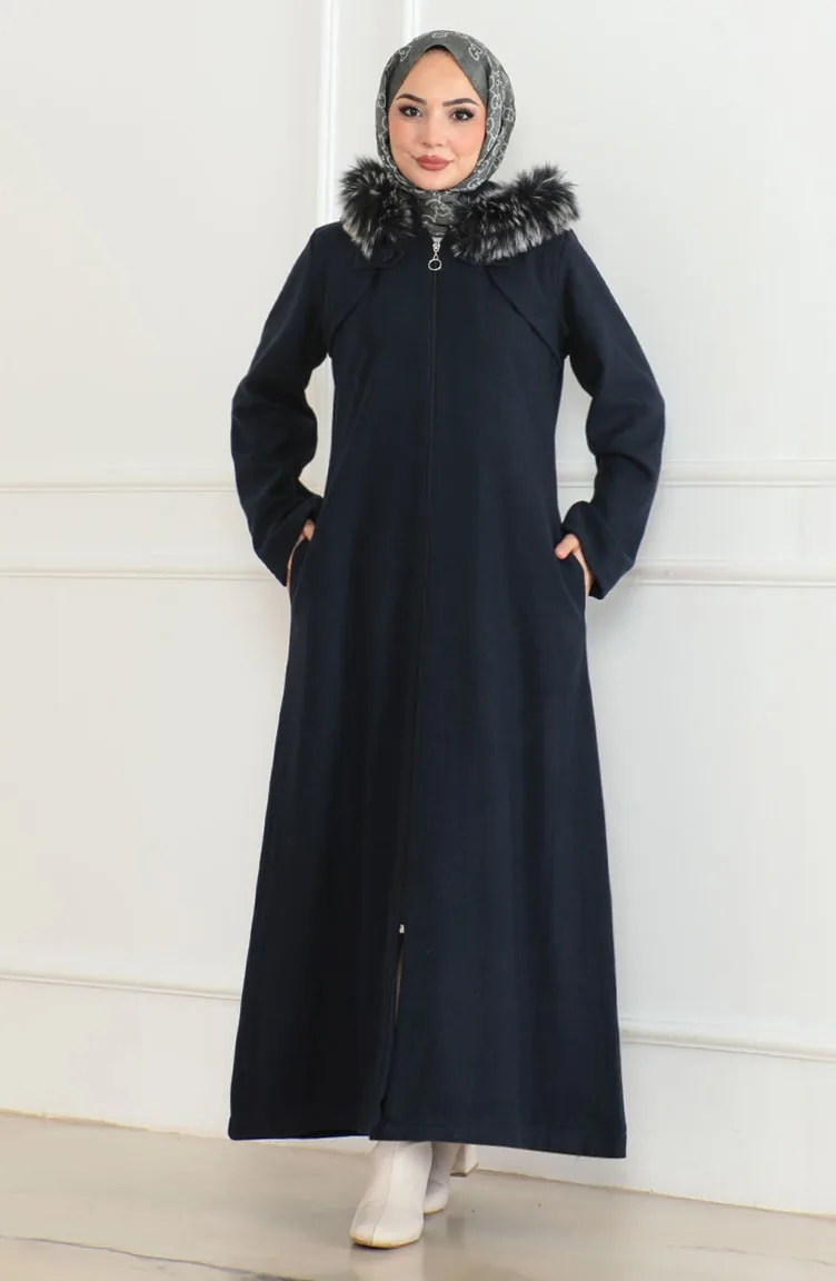 Manteau En Fourrure à Capuche 2058-06 Bleu Marine 2058-06