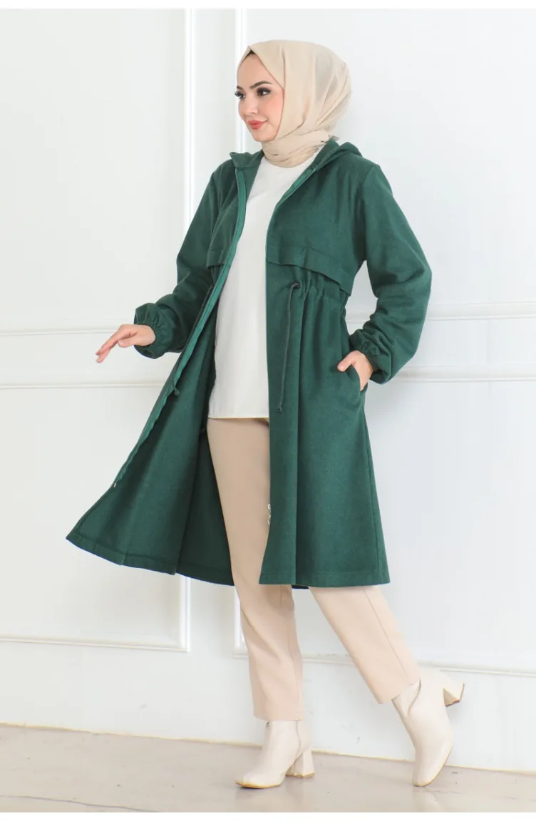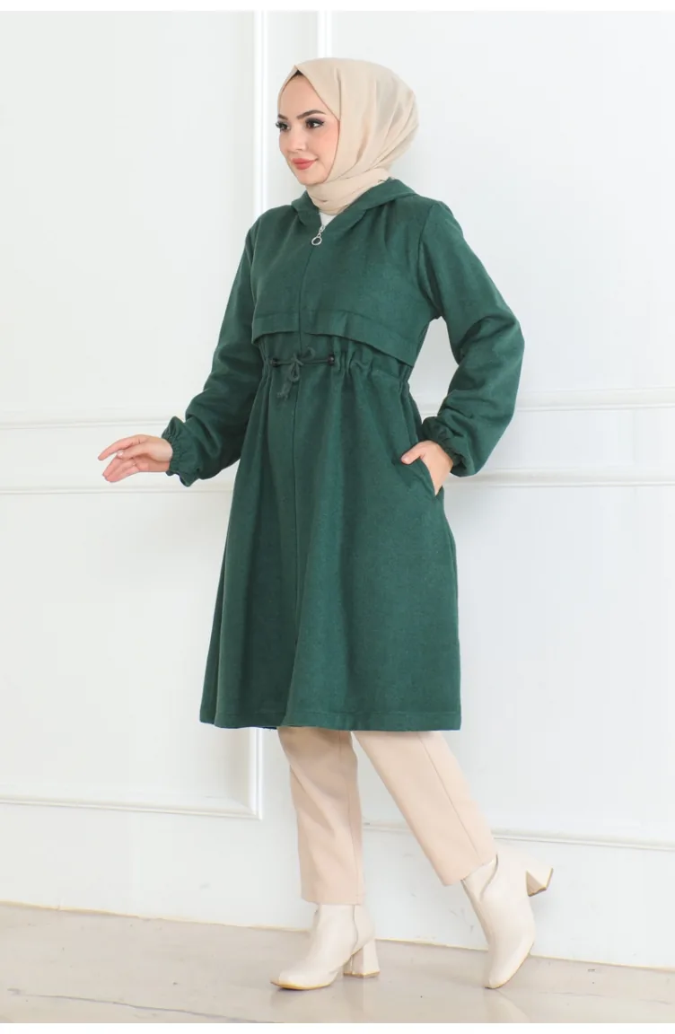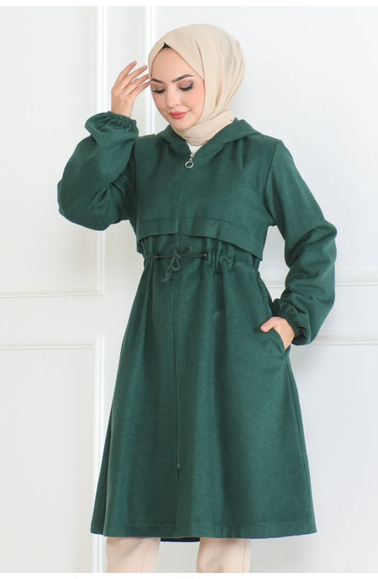 Couleur Vert emeraude. C'est un tissu molleton, vous pouvez l'utiliser facilement en hiver. Simple. Hivernal. Option de grande taille disponible.