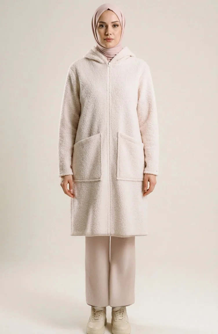 Manteau D`hiver à Capuche Fermeture éclair Et Poches 2211-01 Blanc 2211-01