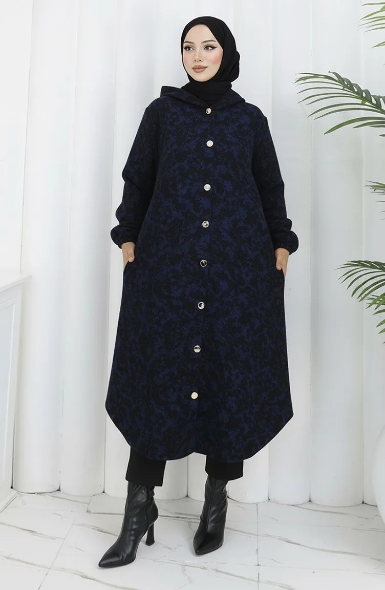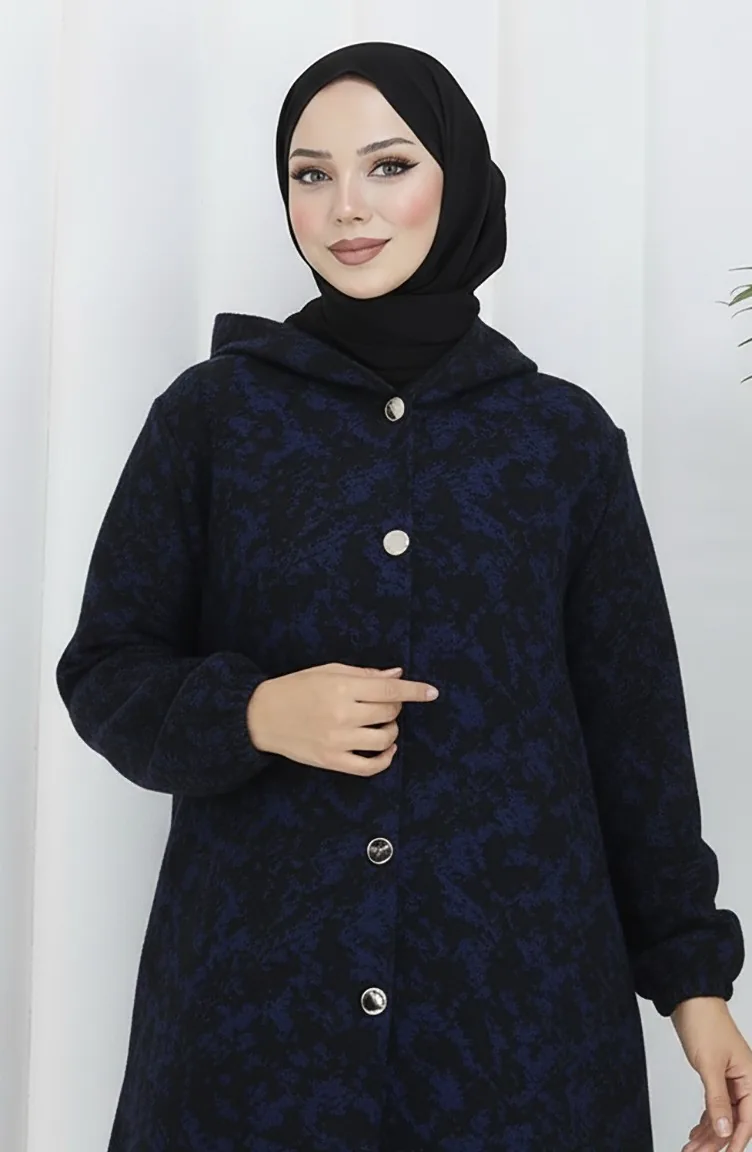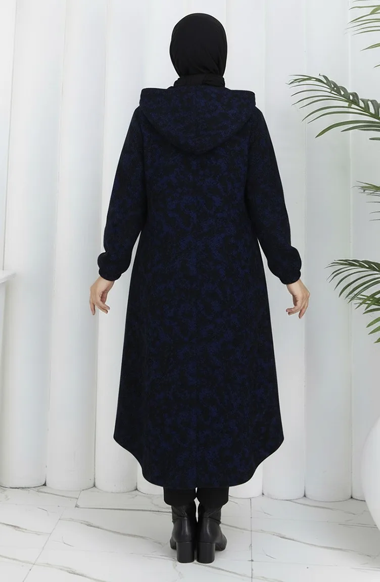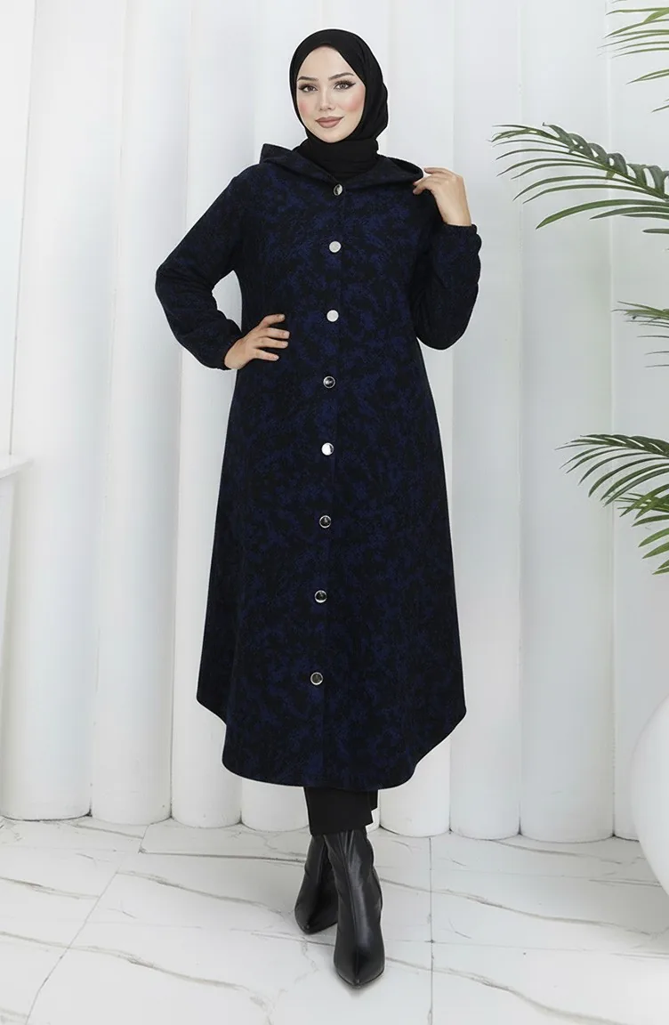 Manteau En Cachemire à Capuche à Motifs 0187A-05 Noir Saxe 0187A-05