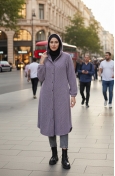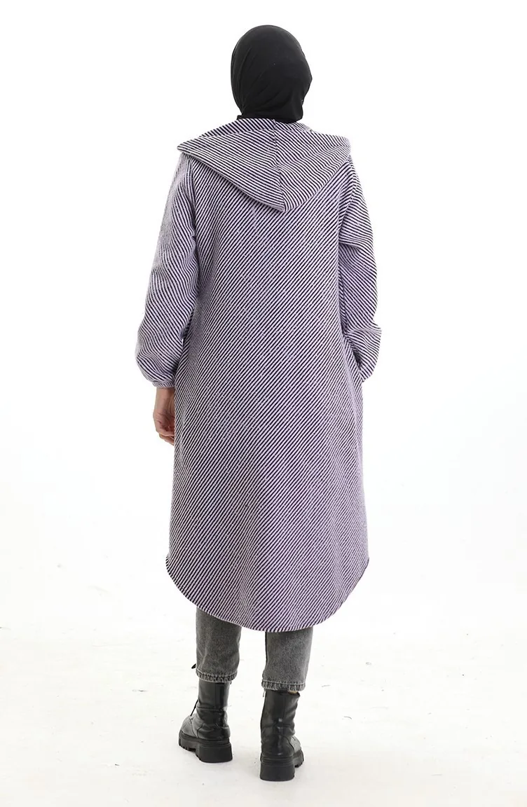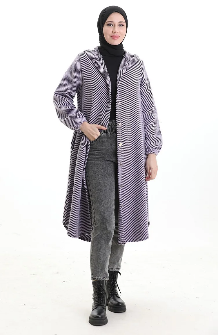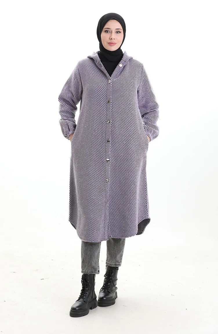 Manteau En Cachemire à Capuche Et Boutons 0201-01 Lilas 0201-01