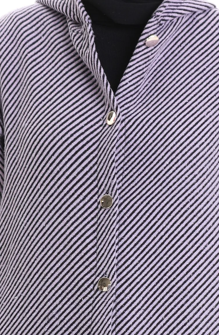 Couleur Lila. Tissu polyester. A Rayures. Avec boutons. Manches élastiques. Hivernal. Option de grande taille disponible.