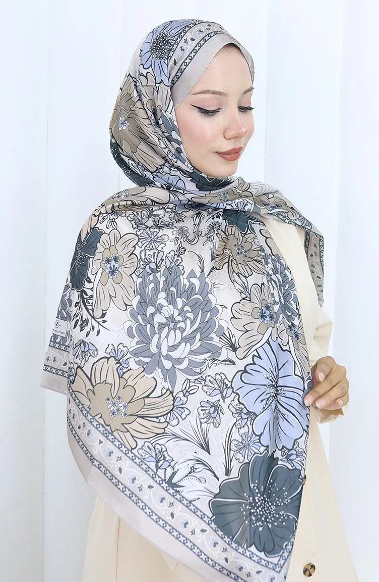 Châle à Motifs De Fleurs De Champagne 70319-09 Beige Fumé 70319-09
