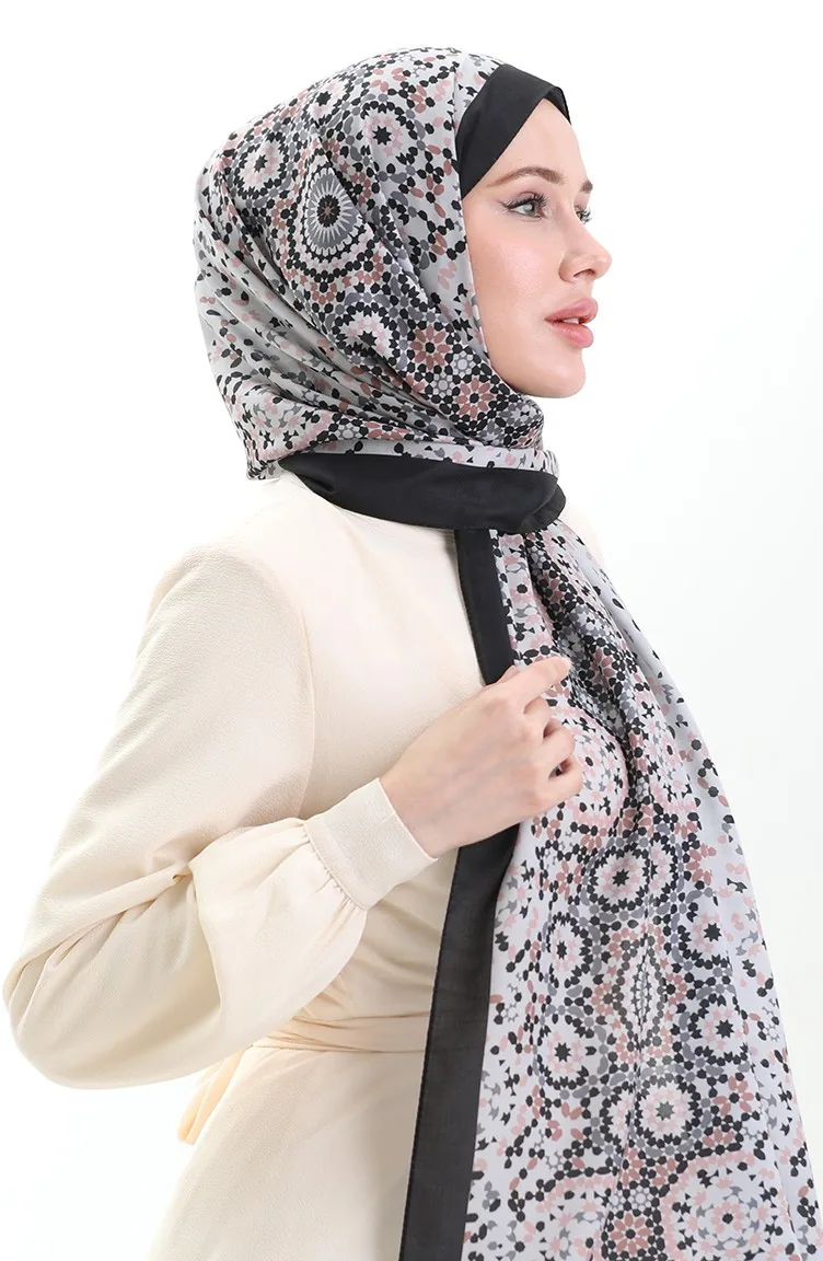 Châle Doux à Motifs 70297-03 Noir Saumon Clair 70297-03