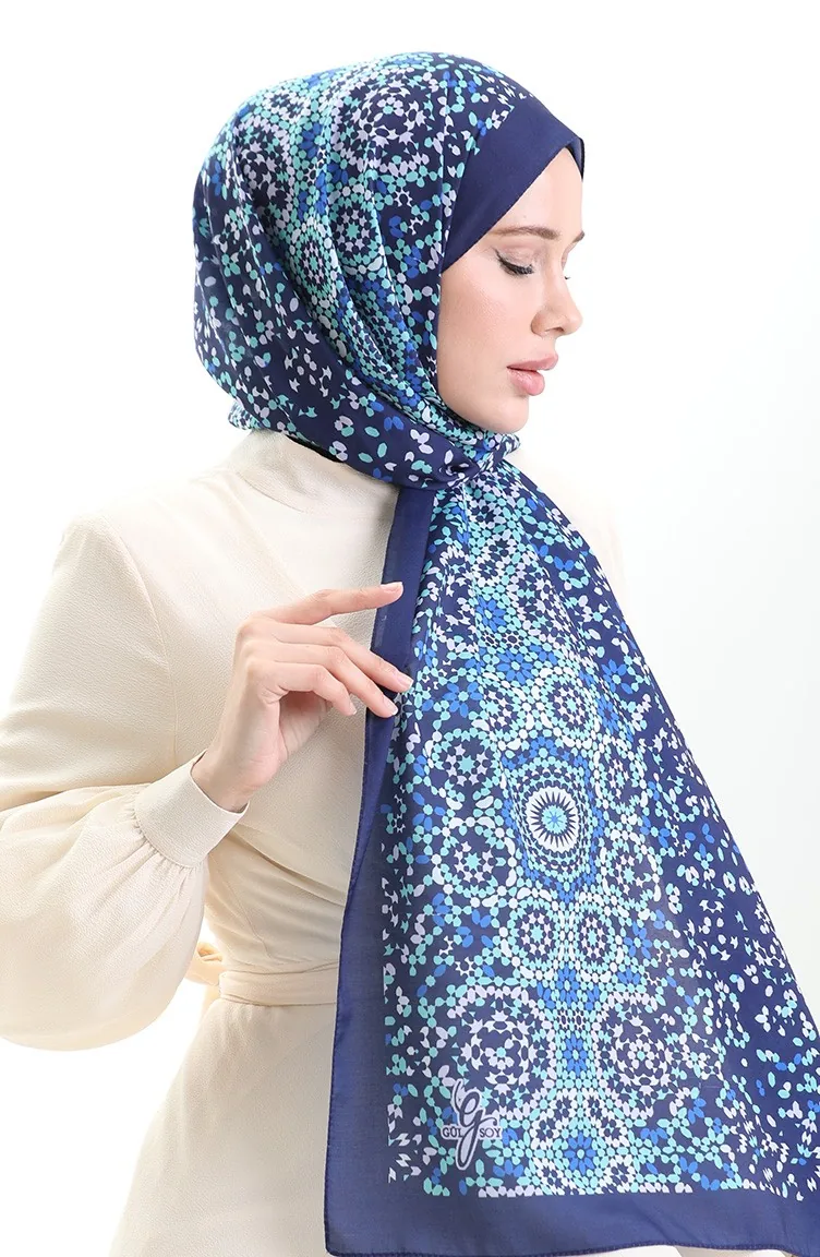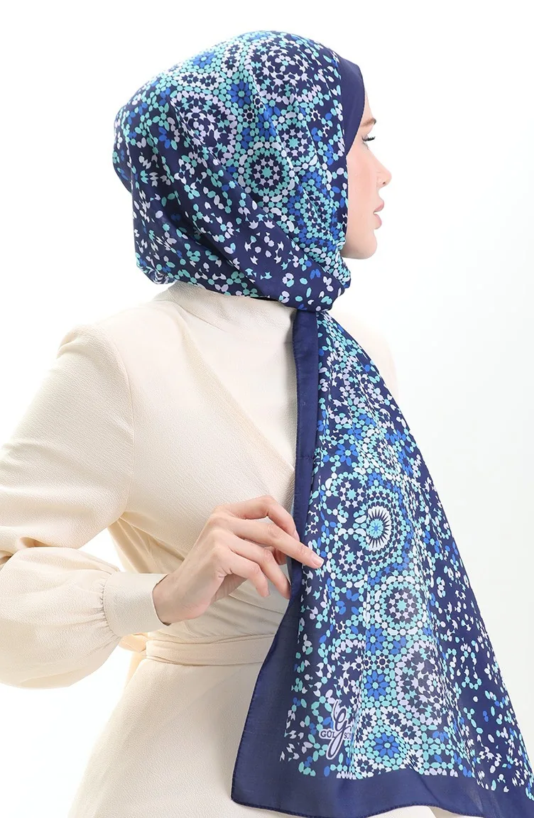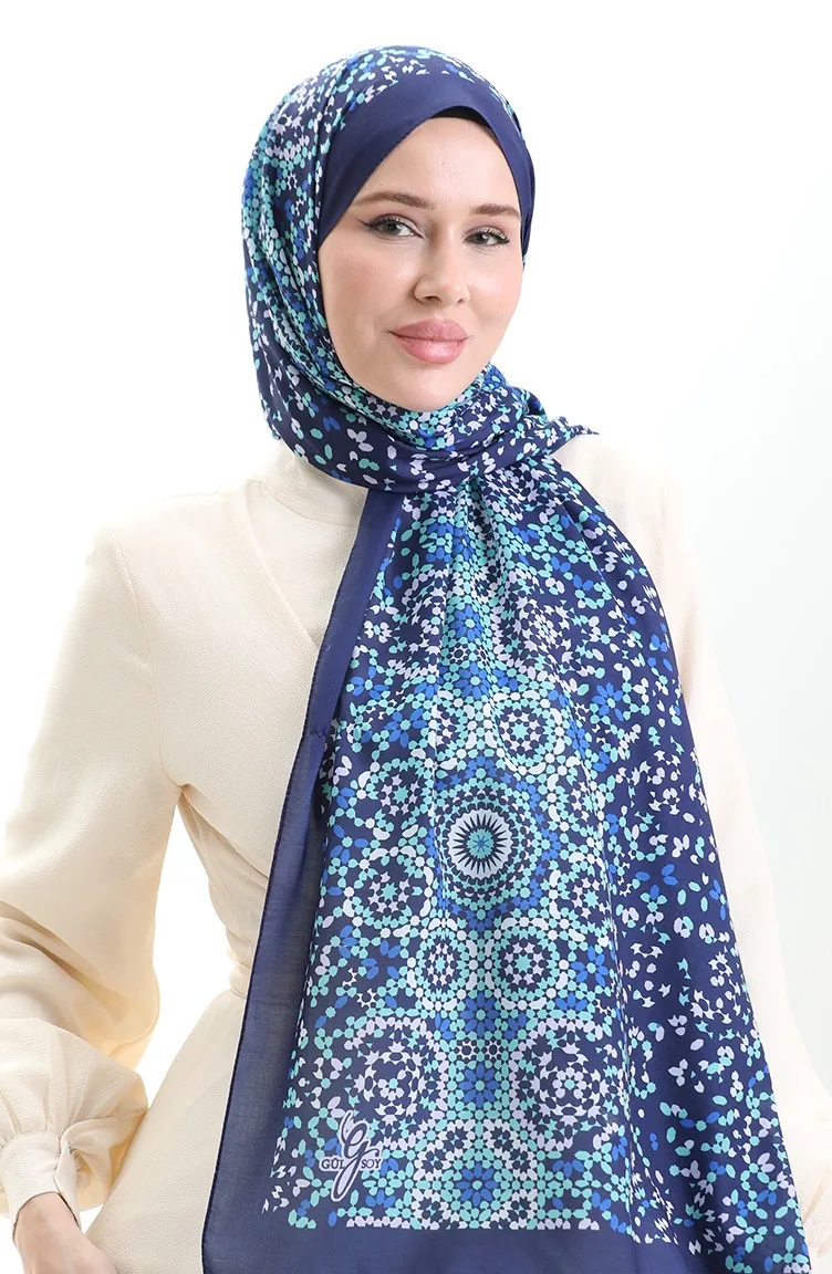 Châle Doux à Motifs 70297-09 Bleu Marine Vert Menthe 70297-09