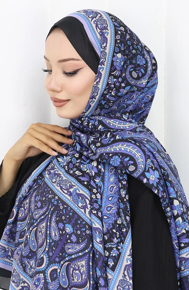 Châle Doux à Motifs Ethniques 70312-07 Noir Lilas 70312-07