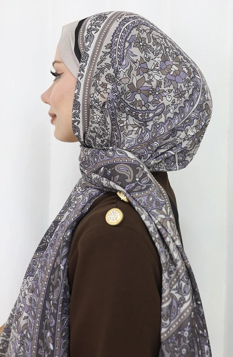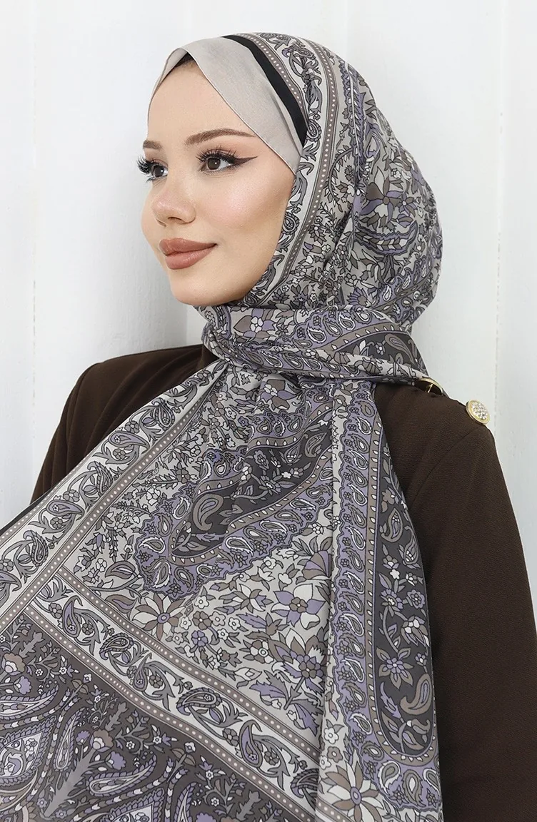 Châle Doux à Motifs Ethniques 70312-12 Beige Gris 70312-12