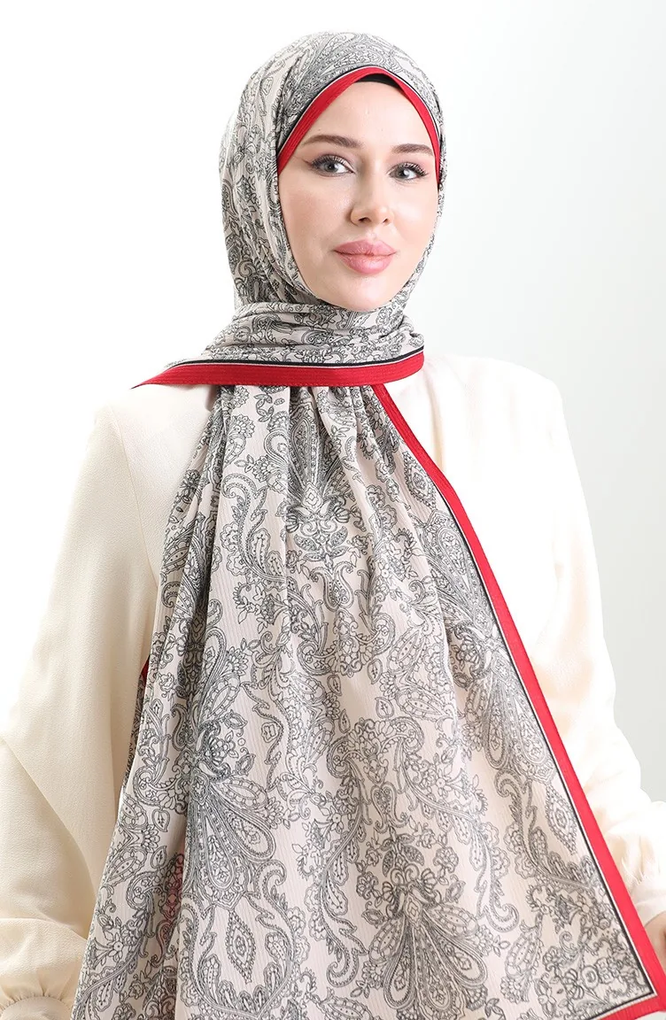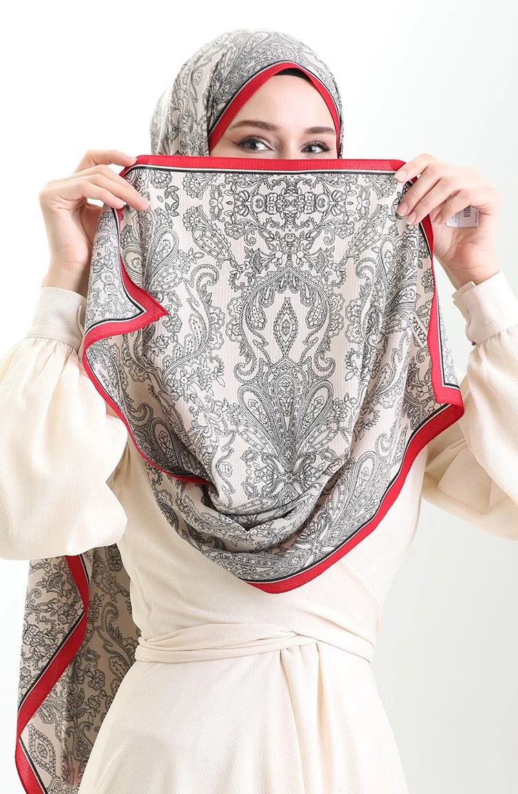 Châle En Crêpe Mio à Motif Karaca 81099-14 Rouge Crème 81099-14