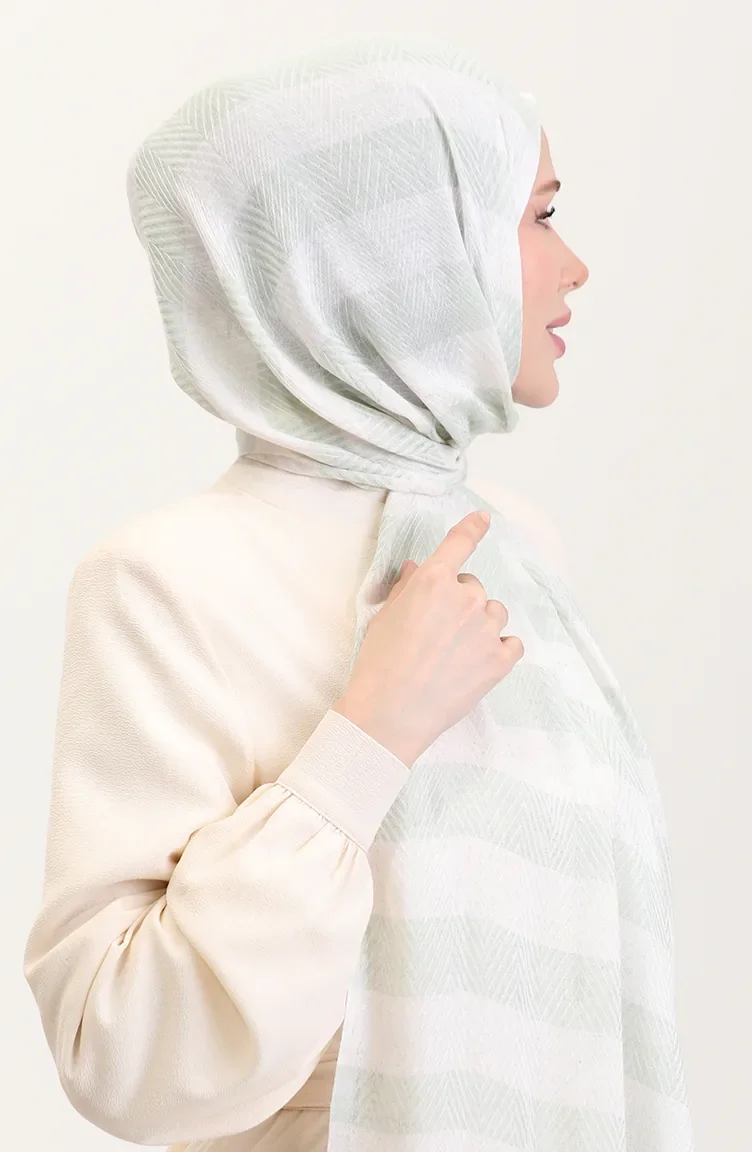 Châle En Lin à Motifs Géométriques 70285-09 Vert Menthe 70285-09