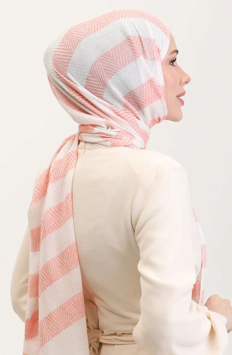 Châle En Lin à Motifs Géométriques 70285-10 Saumon 70285-10