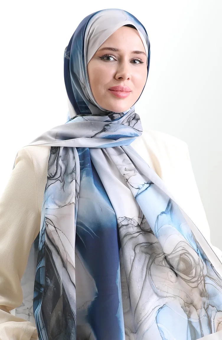 Châle En Soie Française Hanzade 70328-01 Indigo Light Mink 70328-01