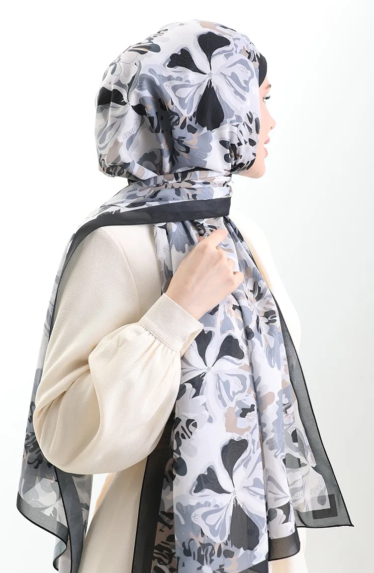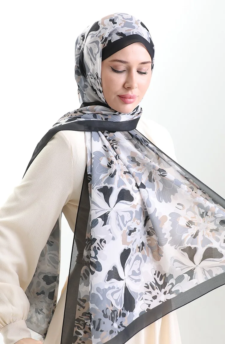 Châle En Soie Française Hanzade 70329-06 Noir Beige 70329-06