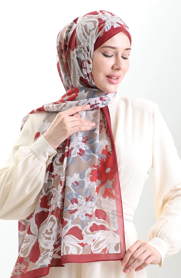 Châle En Soie Française Hanzade 70329-12 Bordeaux Beige 70329-12