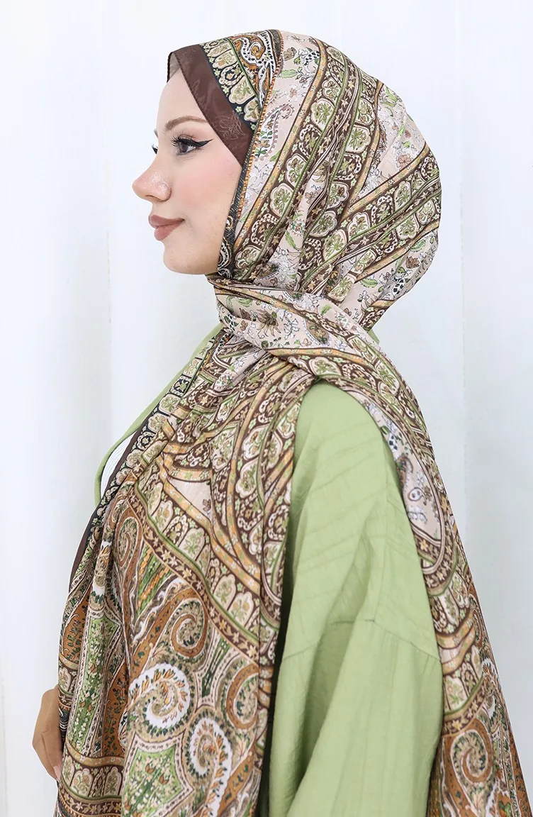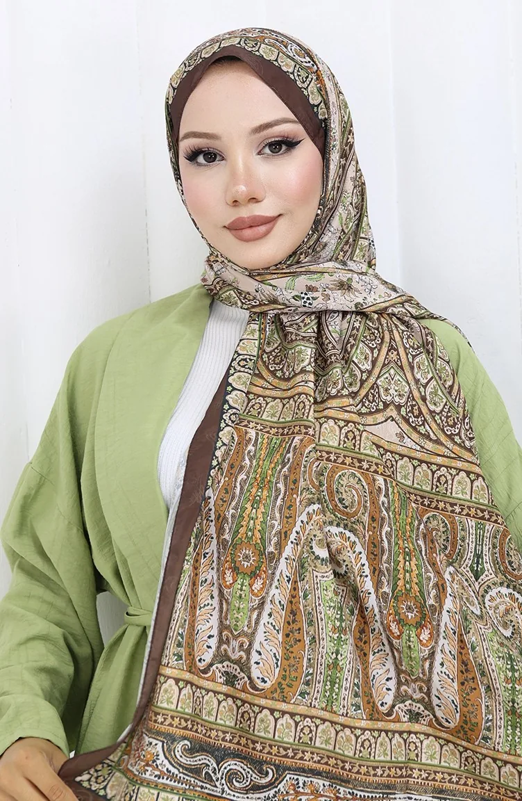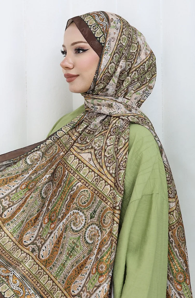 Châle En Voile à Motif Ethnique 70303-12 Vert Marron 70303-12