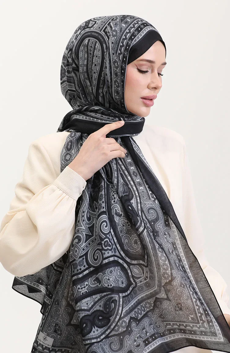 Châle Ethnique En Ambre 70278-03 Noir Gris 70278-03