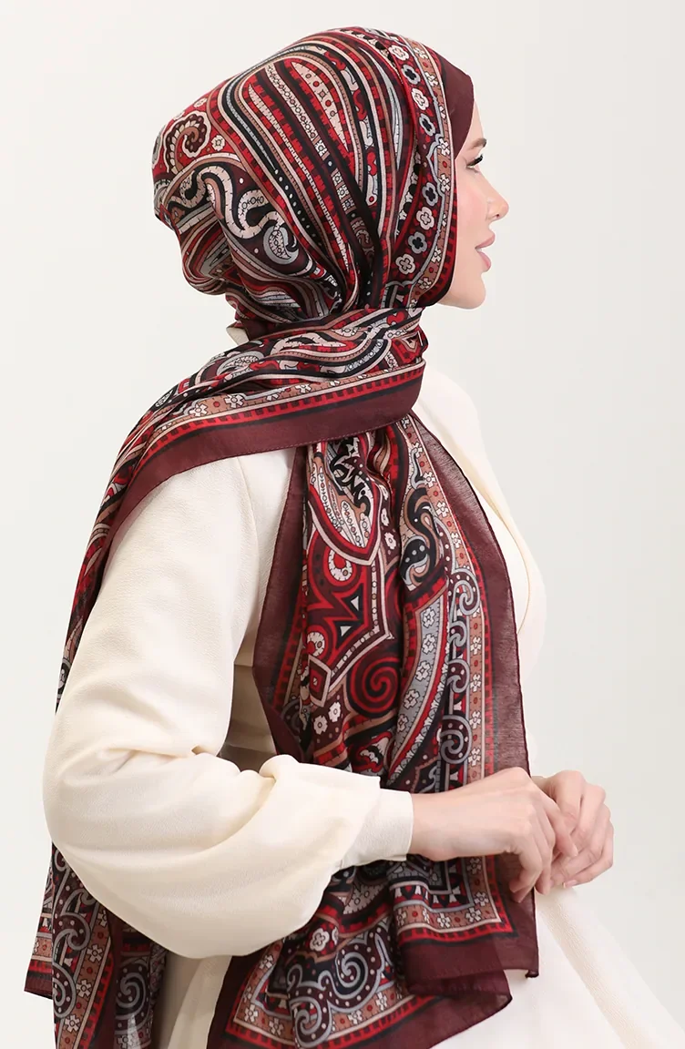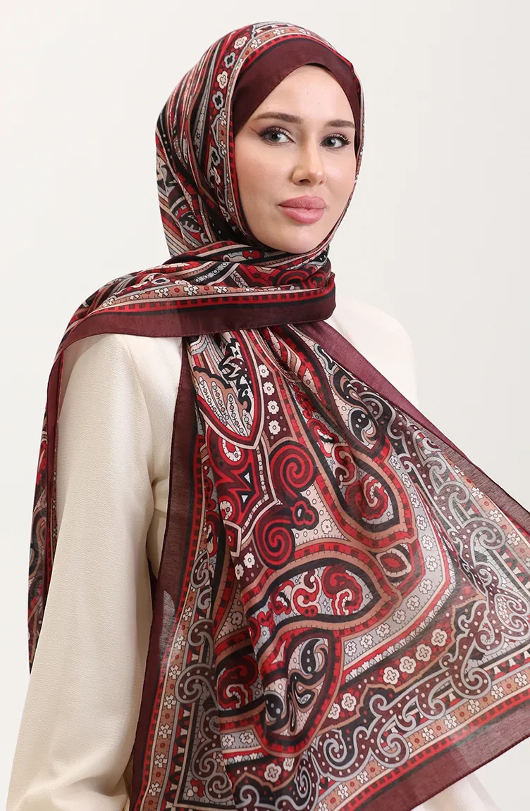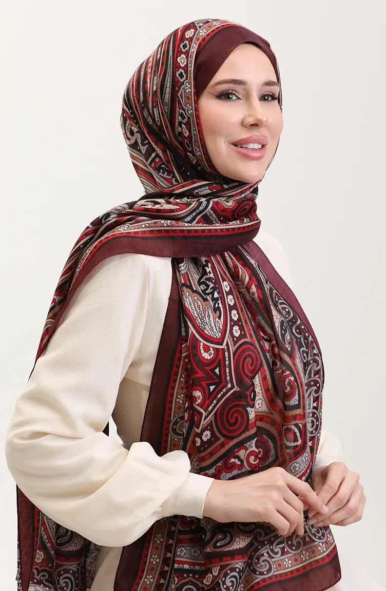 Châle Ethnique En Ambre 70278-06 Rouge Bordeaux 70278-06