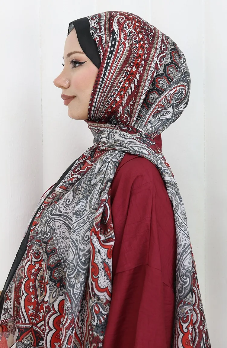 Châle Janjan à Motif Ethnique 70304-19 Bordeaux 70304-19