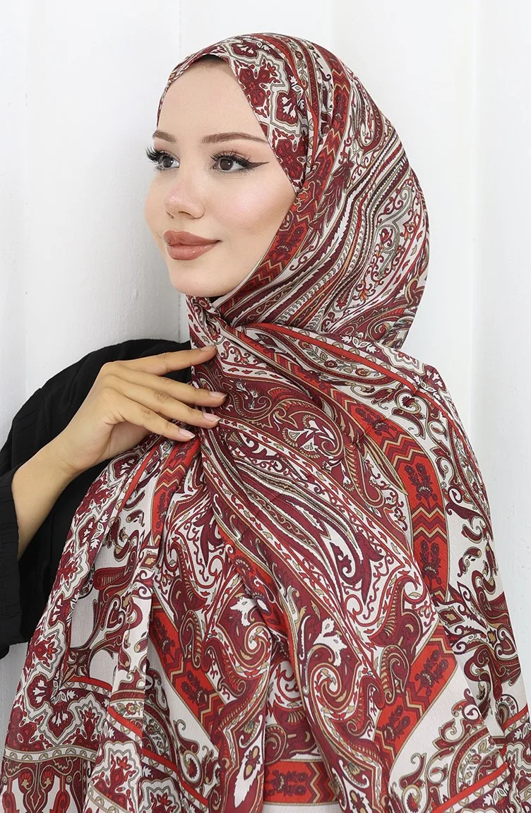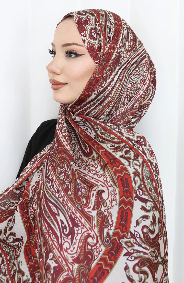Châle Janjan à Motif Ethnique 70305-05 Bordeaux Rouge Beige 70305-05