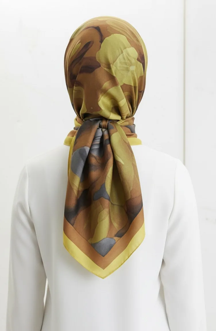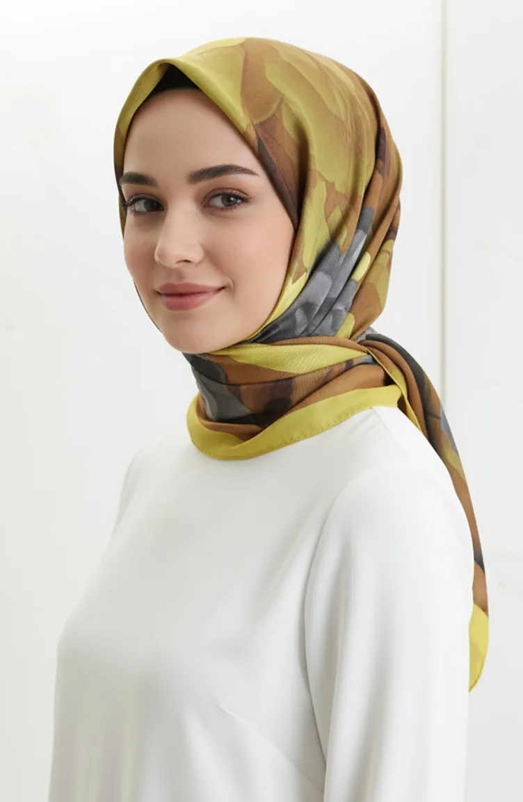 Écharpe à Motif Floral 1015-03 Moutarde 1015-03