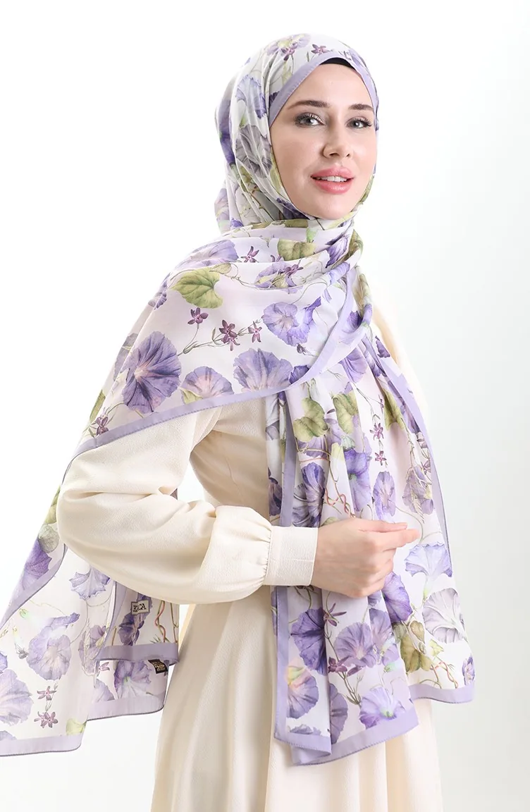 Karaca Châle Coton 82006-11 Lilas Ecru 82006-11