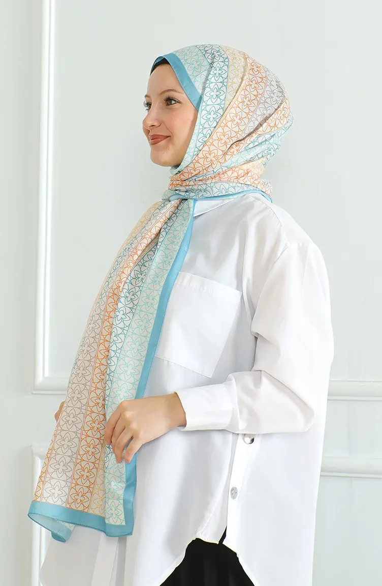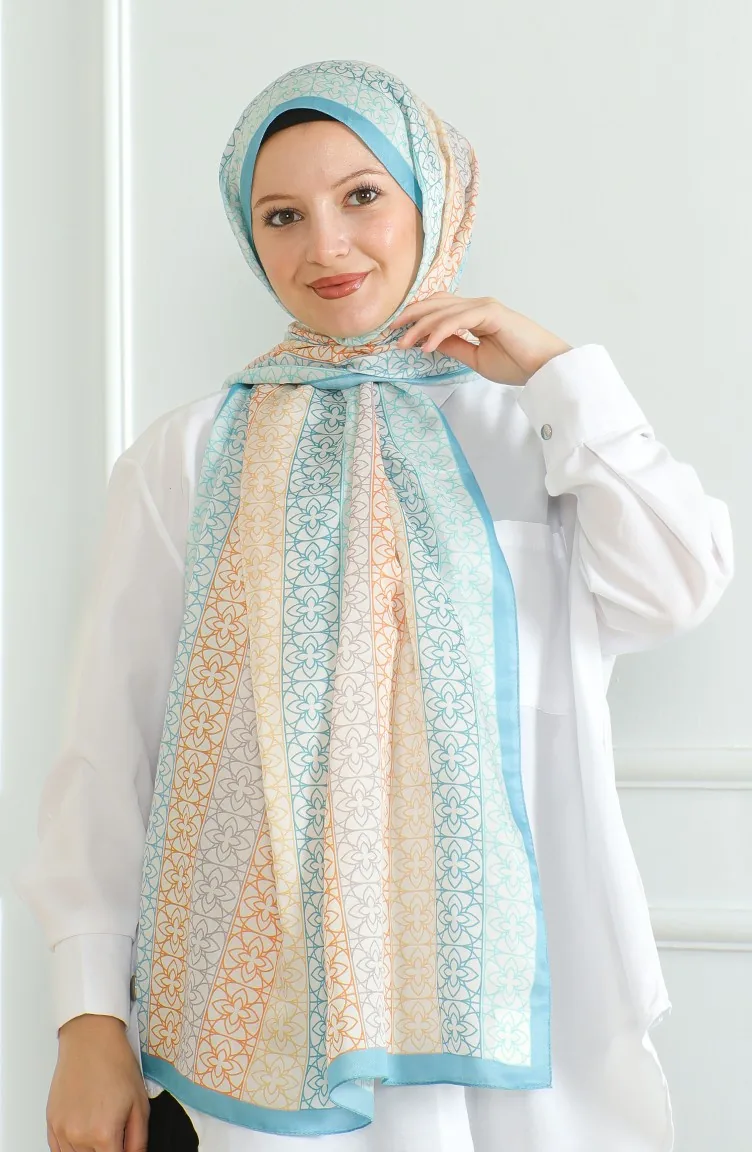 Couleur Bleu clair. Utilisé de soie douce. Tissu à motifs. Adapté pour les 4 saisons. Taille standard.