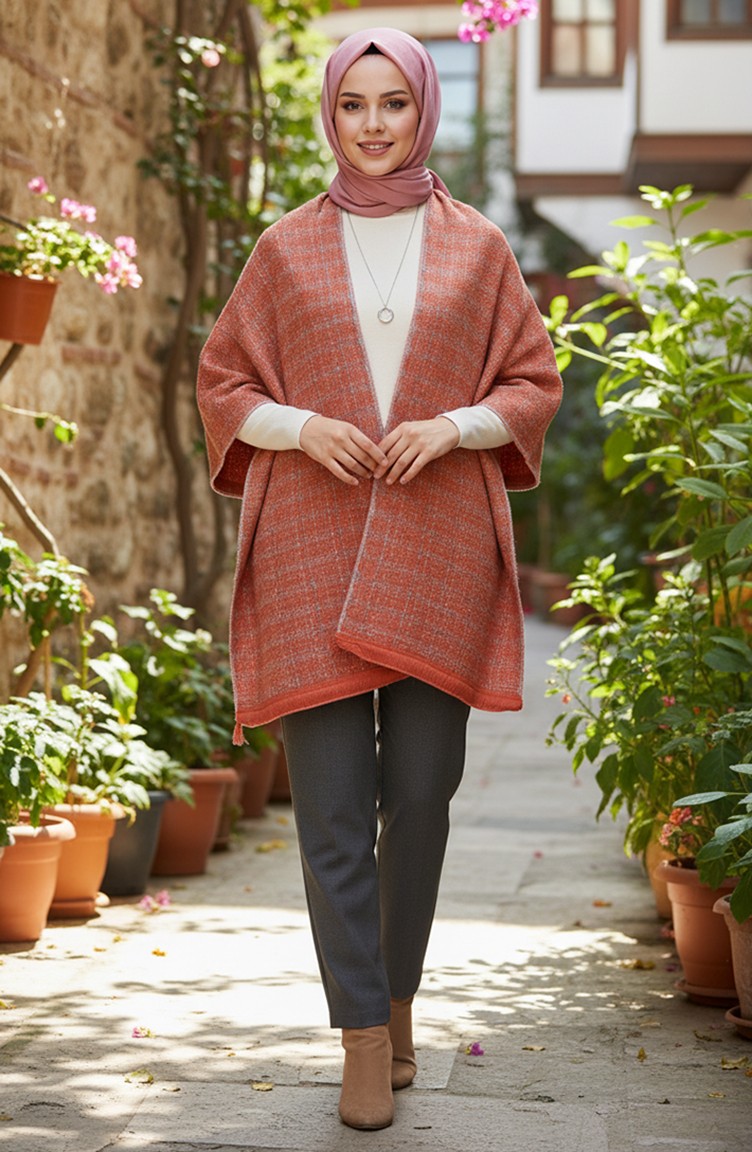 Couleur Orange. Tissu de coton. Tissu à motifs. Hivernal. Produit porté par le mannequin est sa propre taille.