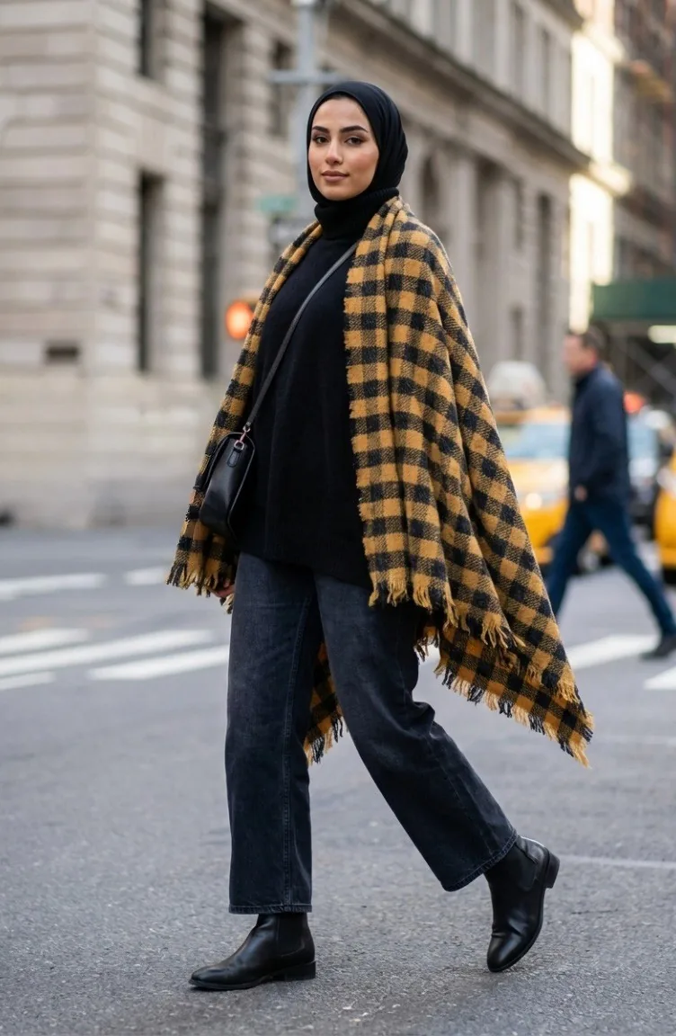 Couleur Moutarde. Tissu de coton. Tissu à motifs. Hivernal. Produit porté par le mannequin est sa propre taille.