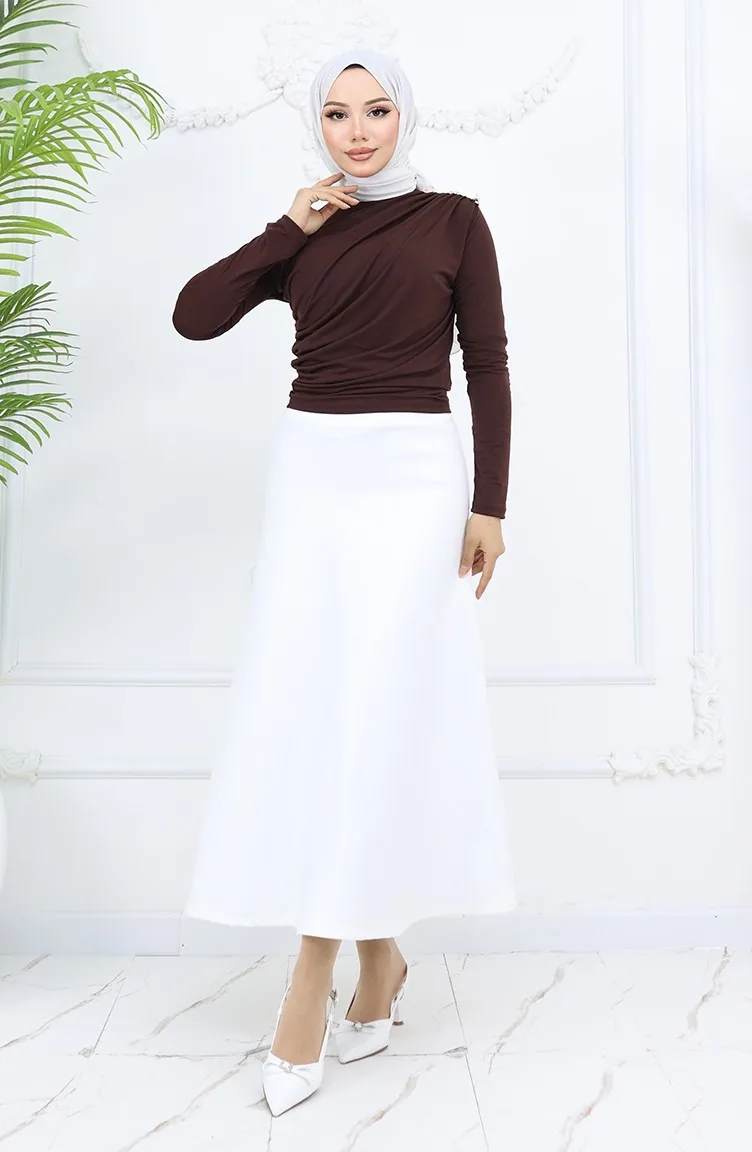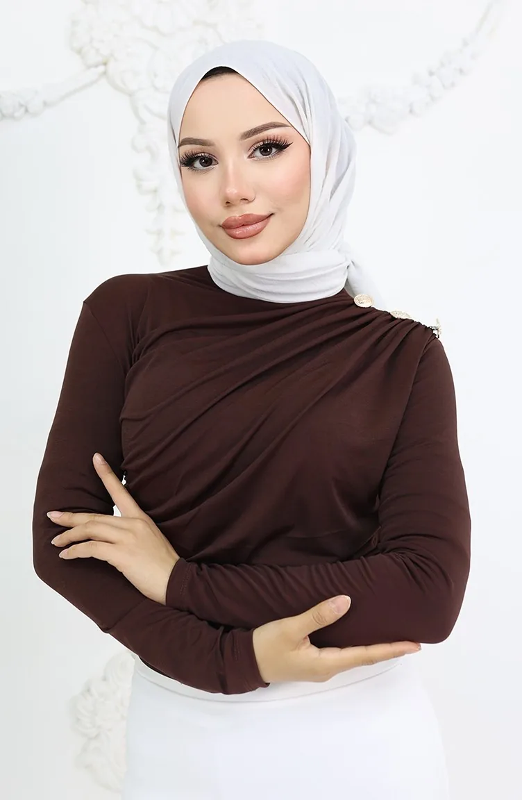 Chemisier à Col Roulé Et Boutons Détaillés 71267-03 Marron 71267-03