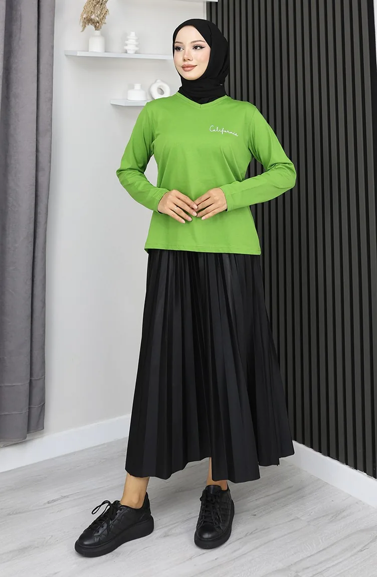 Couleur Verte. Tissu de coton. Simple. Tunique. Col Zéro. Adapté pour les 4 saisons. Produit porté par le mannequin est sa propre taille.