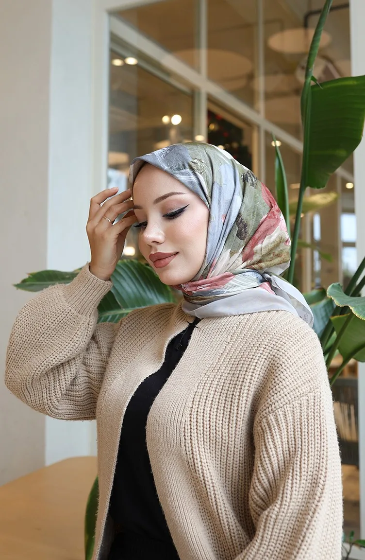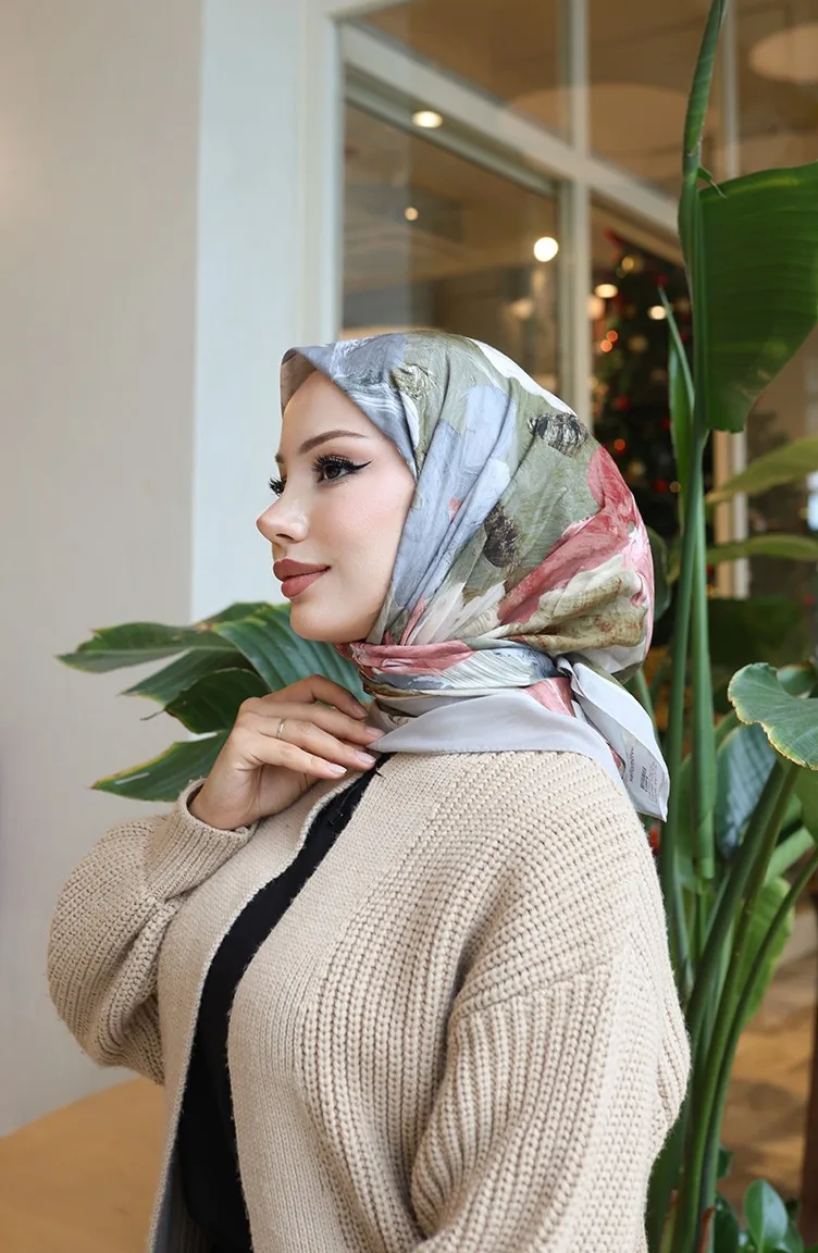 Écharpe Cocon En Coton à Motif Floral 70336-02 Beige Rose Poudré 70336-02