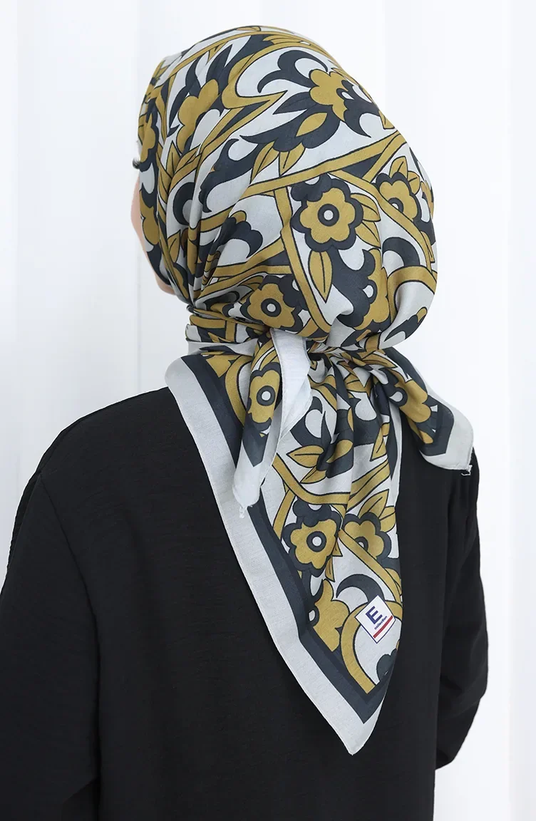 Écharpe Douce à Motifs 90202-07 Gris Moutarde 90202-07