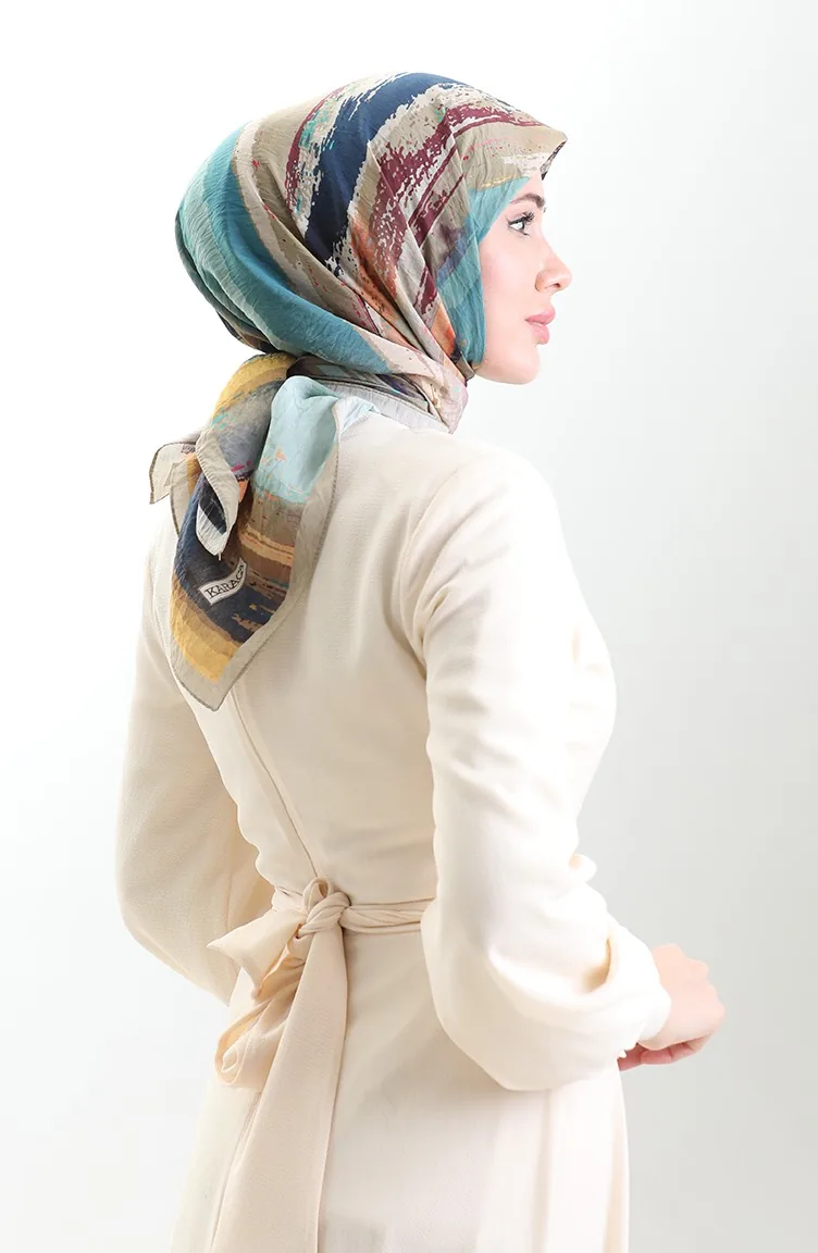 Écharpe En Fibres Naturelles à Motifs Karaca 82019-04 Honey Foam Bleu Marine 82019-04
